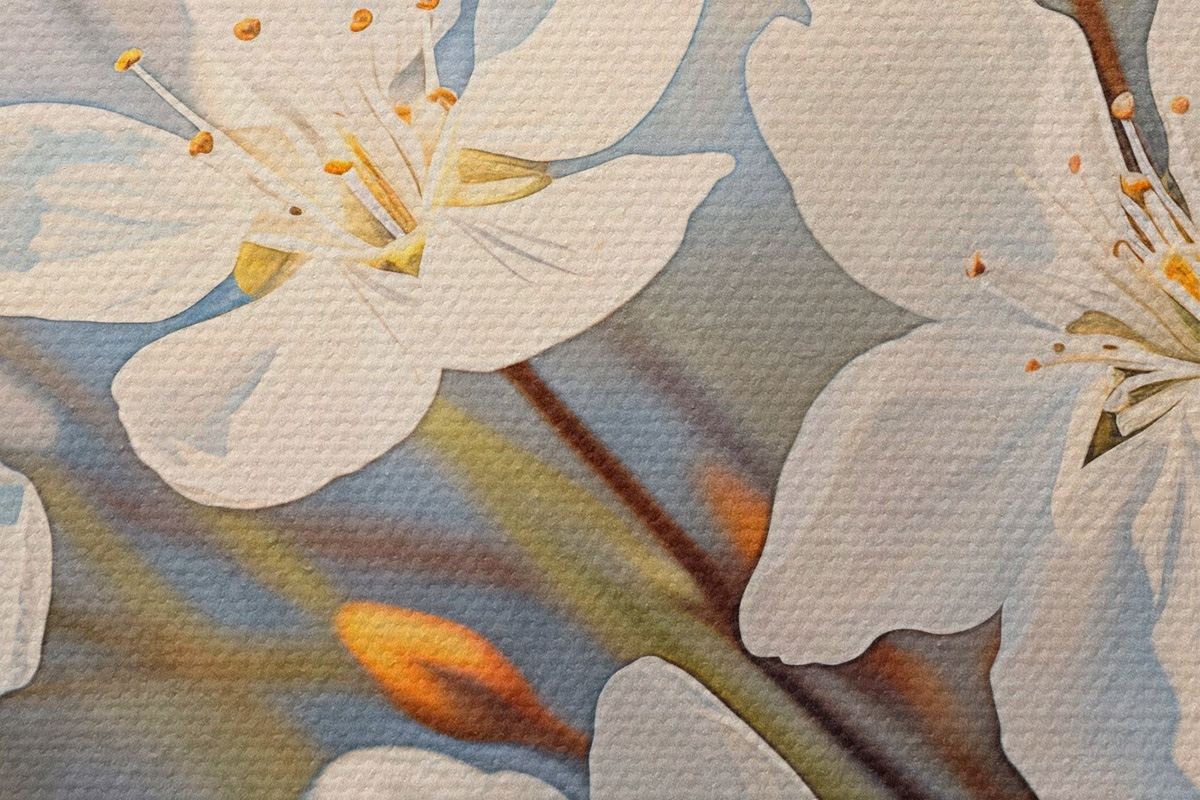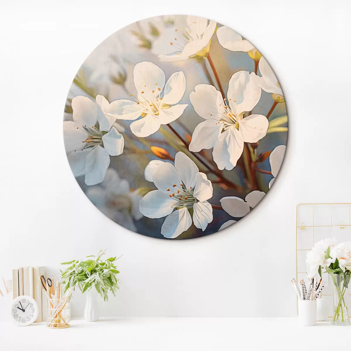 Runde Wandbilder Weiße strukturierte Kirschblüten im Aquarell-Stil, zarte Blütenblätter, Frühlingssaison Nr r44859