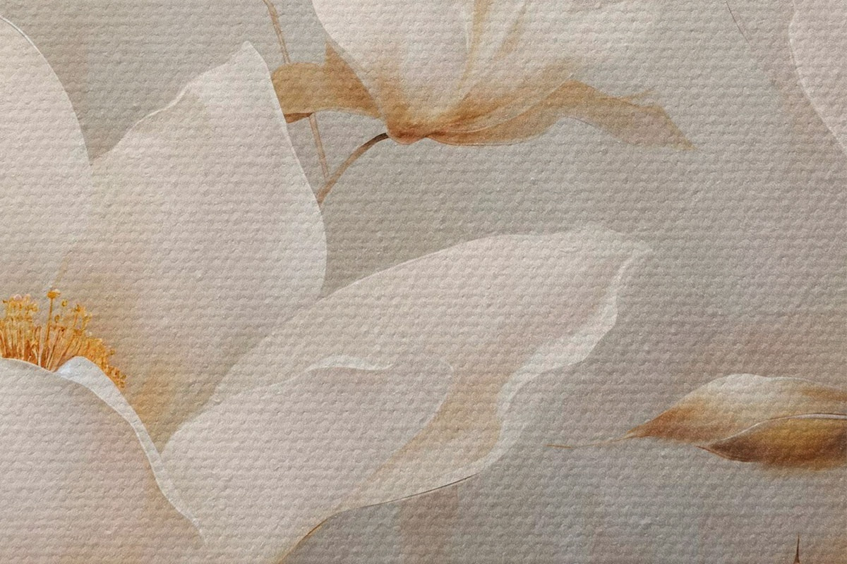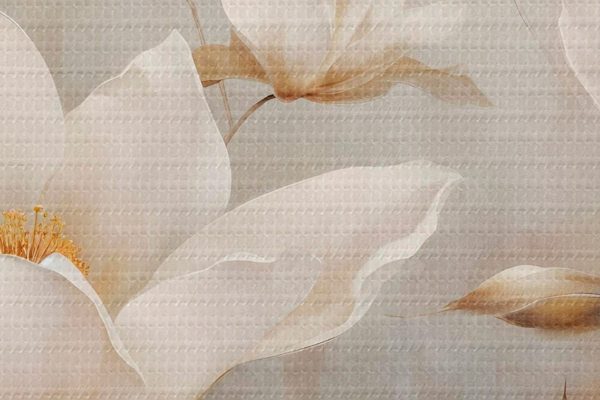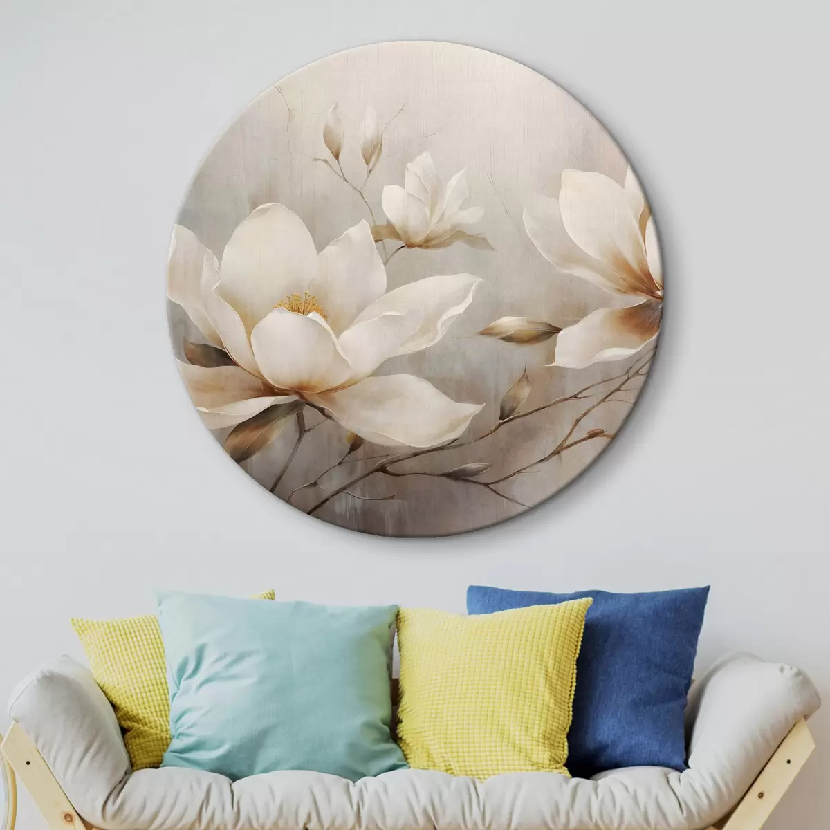 Runde Wandbilder Strukturierte Vintage weiße Magnolienblüten auf Zweigen in einem hellbraunen Hintergrund Nr r44869