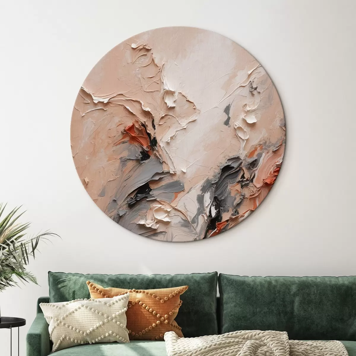 Runde Wandbilder Abstrakt in pfirsichfarbenen Grautönen mit strukturierten Strichen Nr r44873