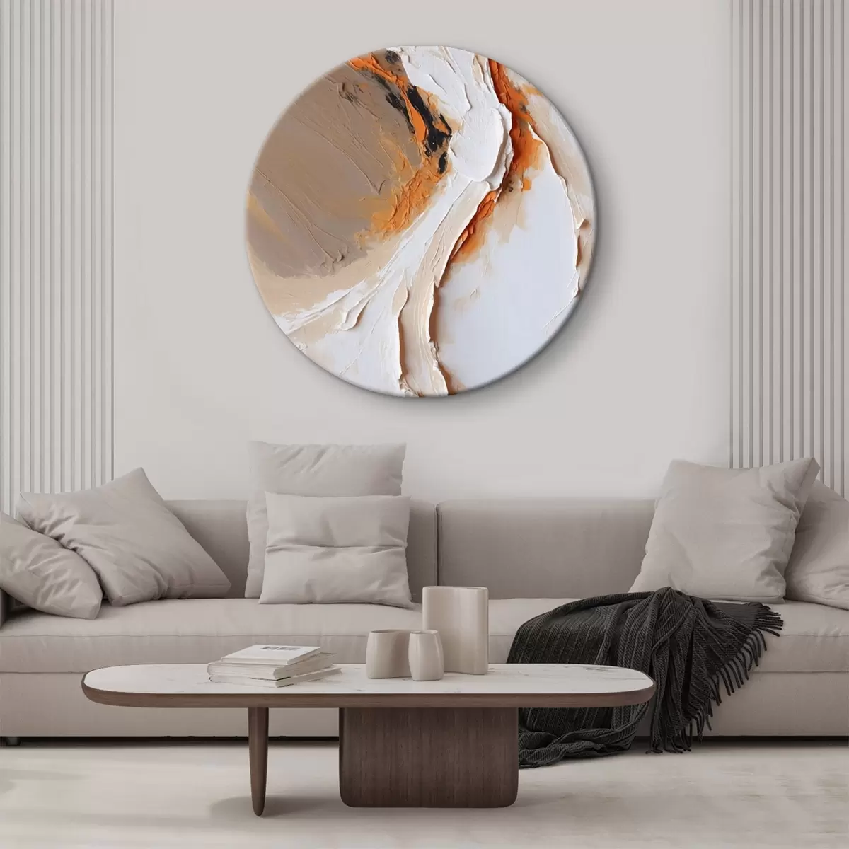 Runde Wandbilder Sanftes Pastell mit orangefarbenem Akzent und weichen Strichen r44874