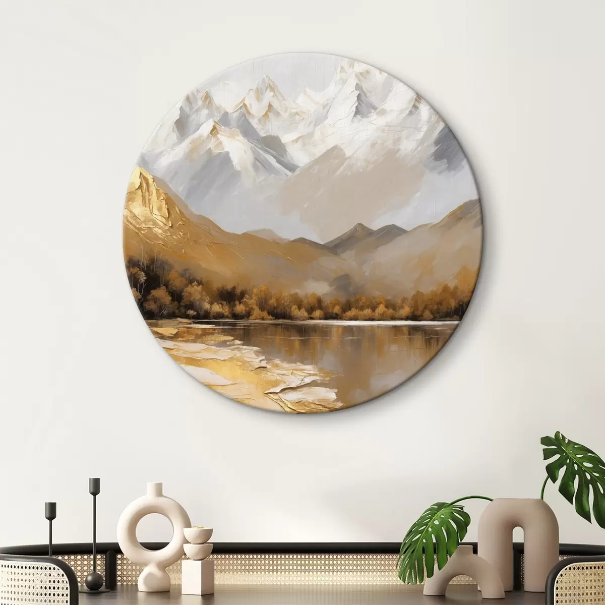 Runde Wandbilder Berglandschaft mit einem See in warmen Farben Nr r44877