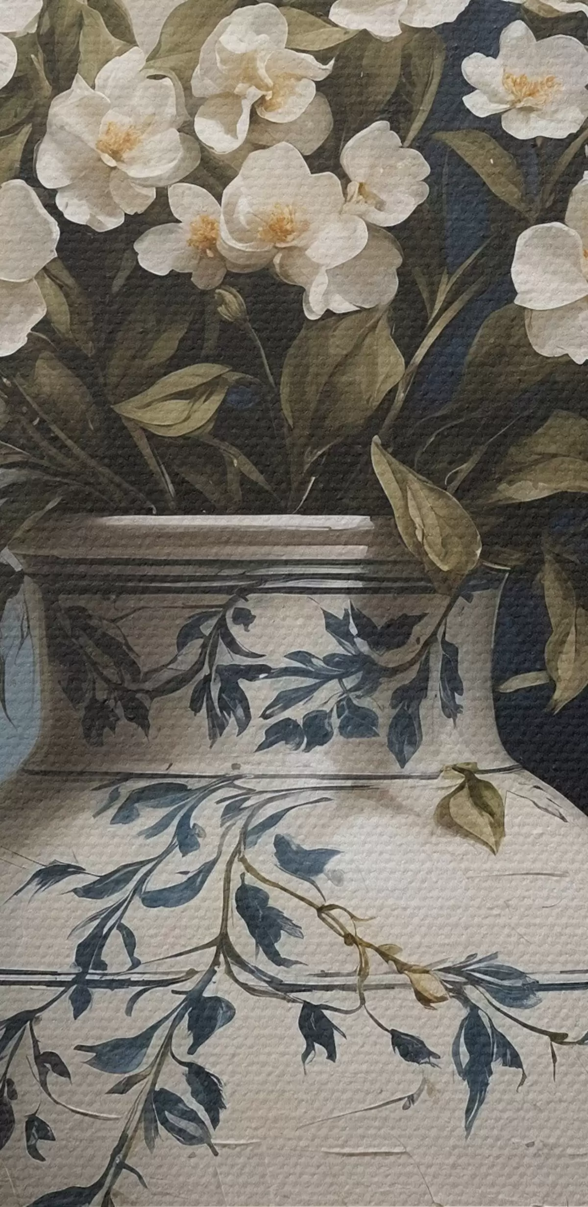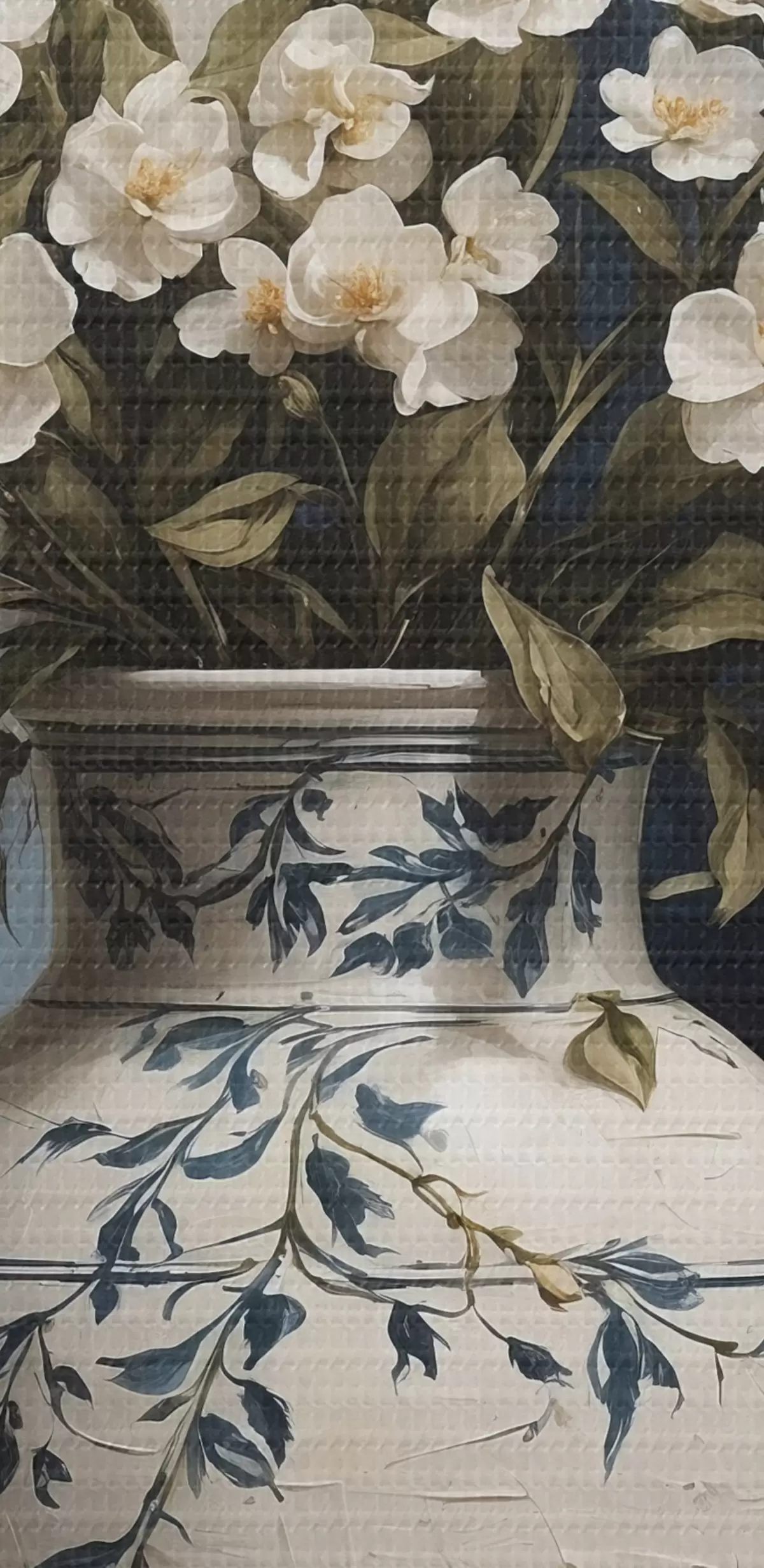 Runde Wandbilder Weiße und gelbe Blumen in einer großen Vase auf blauem Hintergrund Nr r44893