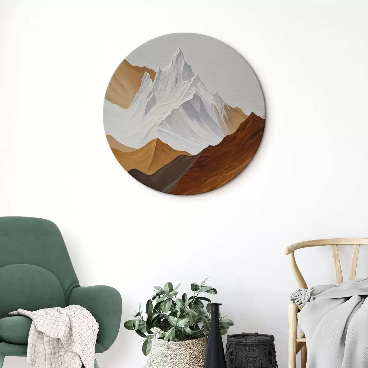 Runde Wandbilder Geometrische Berglandschaft in Braun- und Weißtönen Nr r44896