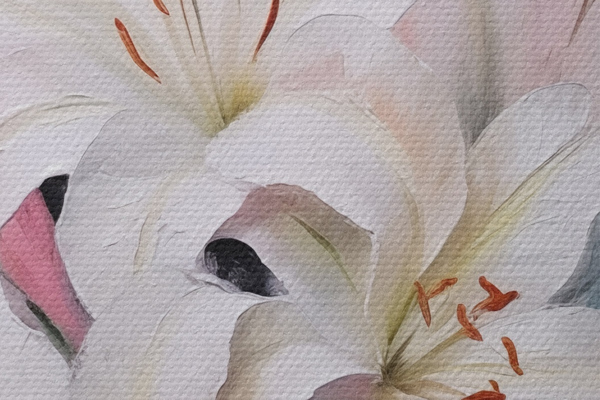 Drei Materialtypen stehen zur Verfügung: Economic Canvas - ein dichtes und haltbares Material für den Digitaldruck, identisch mit Malerleinwand, wasserfeste Oberfläche, realistische Wiedergabe von Details, mittelkörniges Material. Premium Canvas - die Textur ähnelt der einer Malerleinwand (verwobene kleine Fäden). Weiche, detaillierte Wiedergabe des Bildes auf einer matten Oberfläche. Eco-Premium - hochwertiges Gewebe aus 100% Baumwolle. Dank der natürlichen Baumwollfasern ist das Material langlebig und verschleißfest. Hervorragende Farbwiedergabe und Detailtreue.
