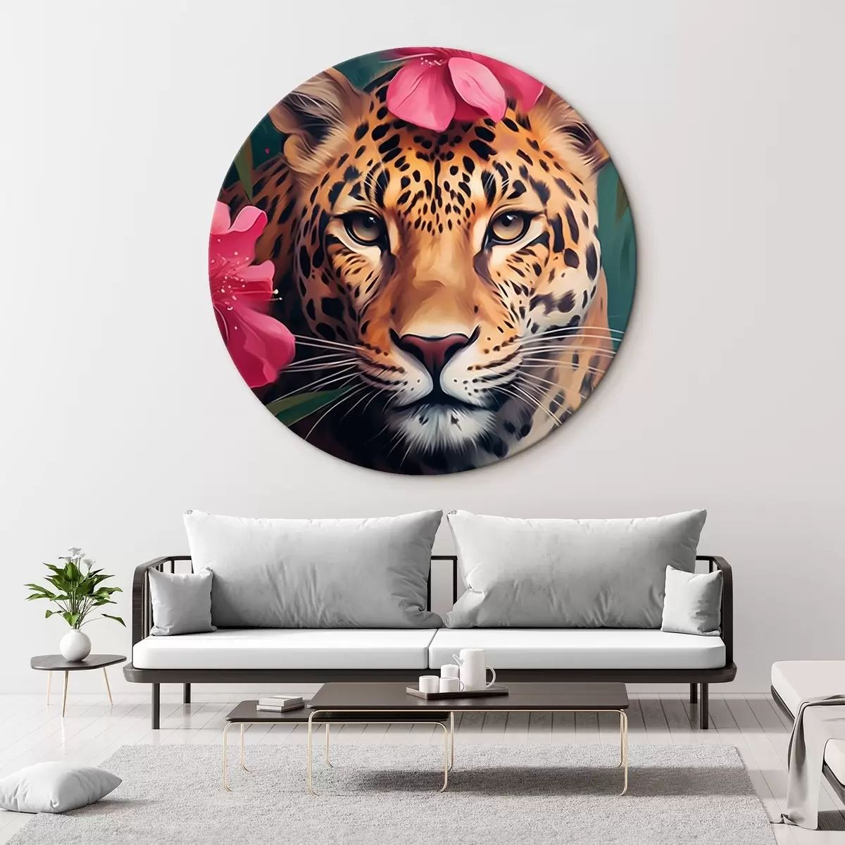 Runde Wandbilder Leopard zwischen tropischen Blumen Nr r44918