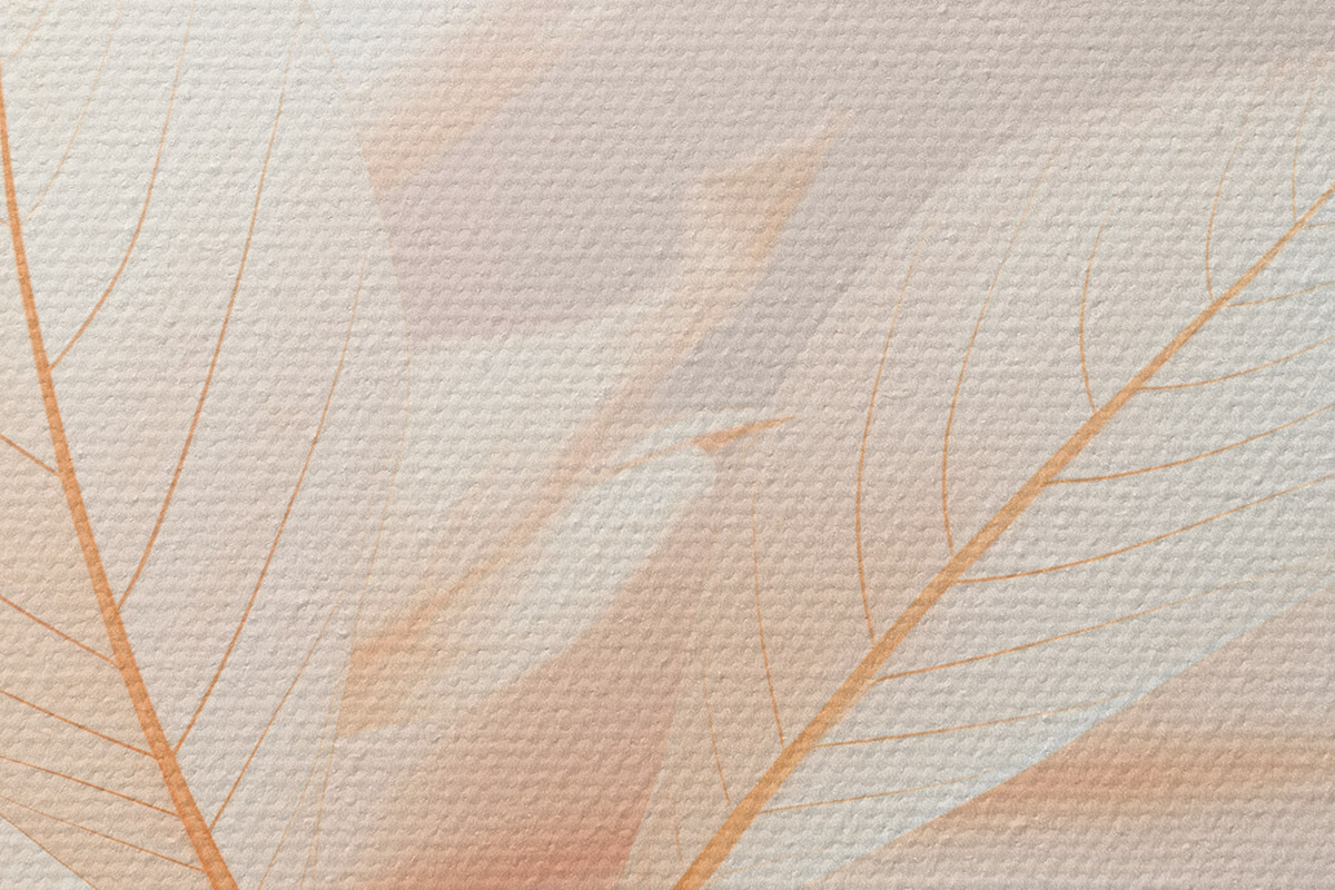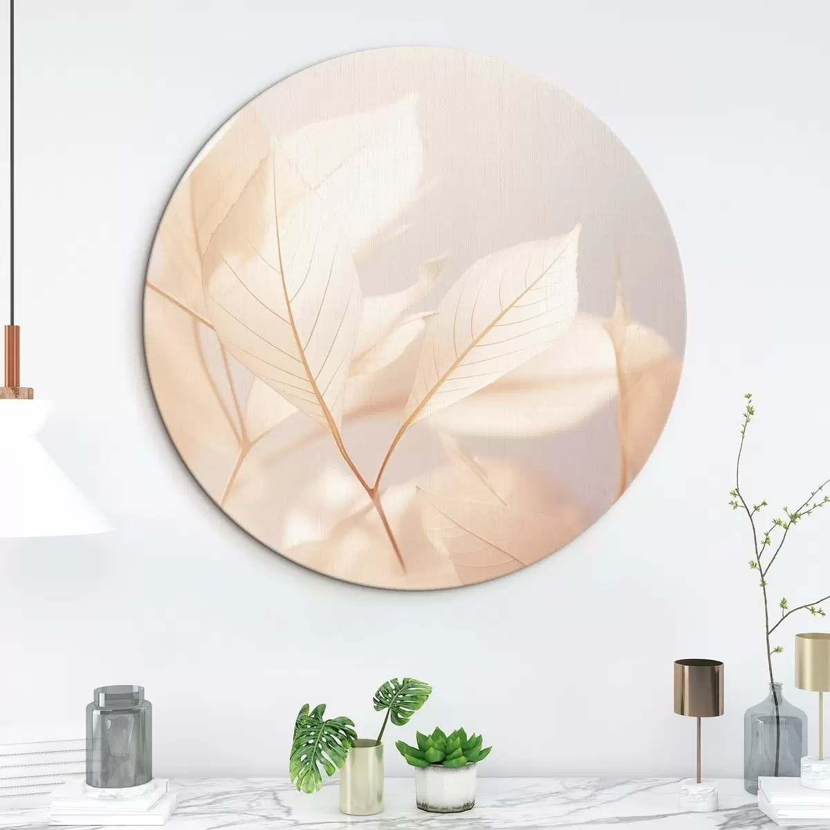 Runde Wandbilder Transluzente Blätter mit komplizierten Adermustern, sanfte Pastellfarben, ätherische Beleuchtung, minimalistische Komposition r44928
