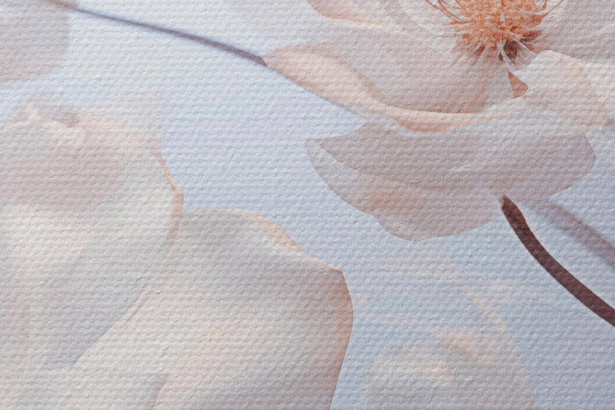 Drei Materialtypen stehen zur Verfügung: Economic Canvas - ein dichtes und haltbares Material für den Digitaldruck, identisch mit Malerleinwand, wasserfeste Oberfläche, realistische Wiedergabe von Details, mittelkörniges Material. Premium Canvas - die Textur ähnelt der einer Malerleinwand (verwobene kleine Fäden). Weiche, detaillierte Wiedergabe des Bildes auf einer matten Oberfläche. Eco-Premium - hochwertiges Gewebe aus 100% Baumwolle. Dank der natürlichen Baumwollfasern ist das Material langlebig und verschleißfest. Hervorragende Farbwiedergabe und Detailtreue.
