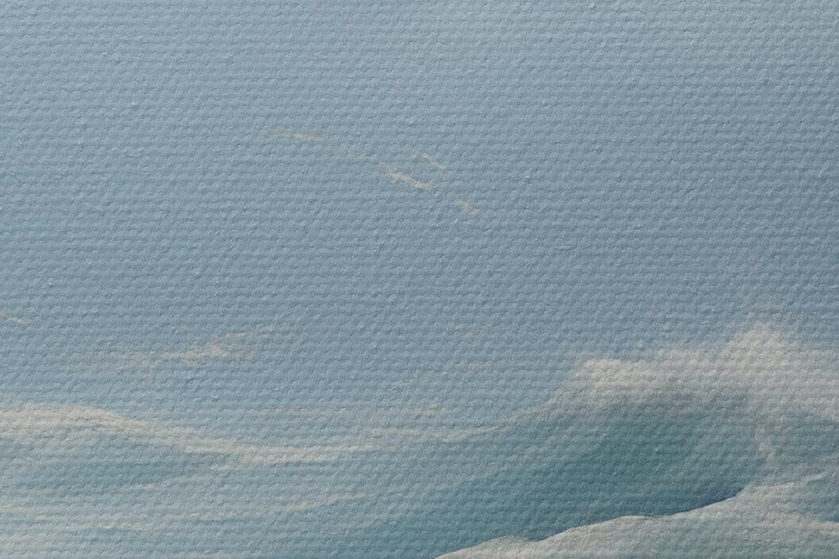 Das feine Fadengeflecht auf dieser Leinwand ähnelt der Oberfläche von professionellen Künstlerleinwänden.