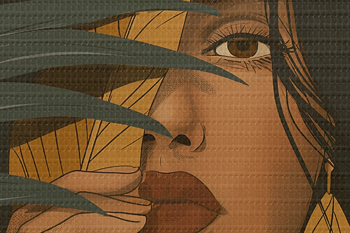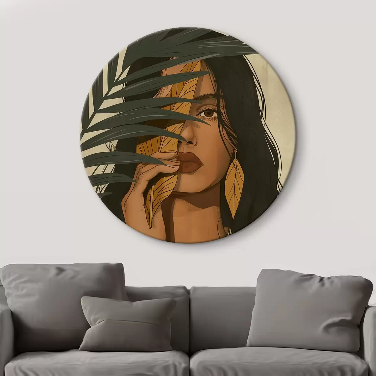 Runde Wandbilder Gesicht hinter Blättern versteckt r44960