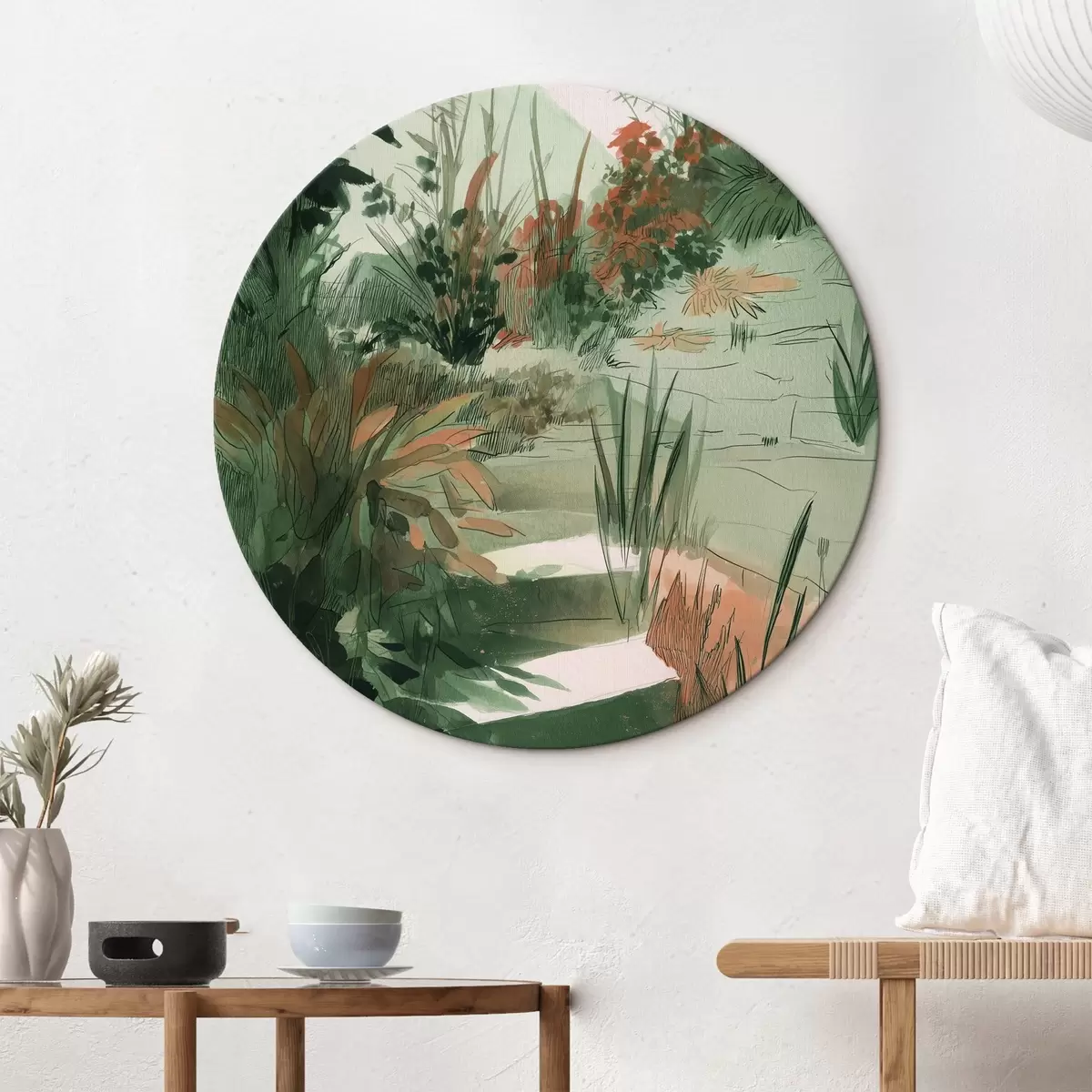 Runde Wandbilder Orientalischer Garten mit Büschen und Bäumen, grüne Farben Nr r44982