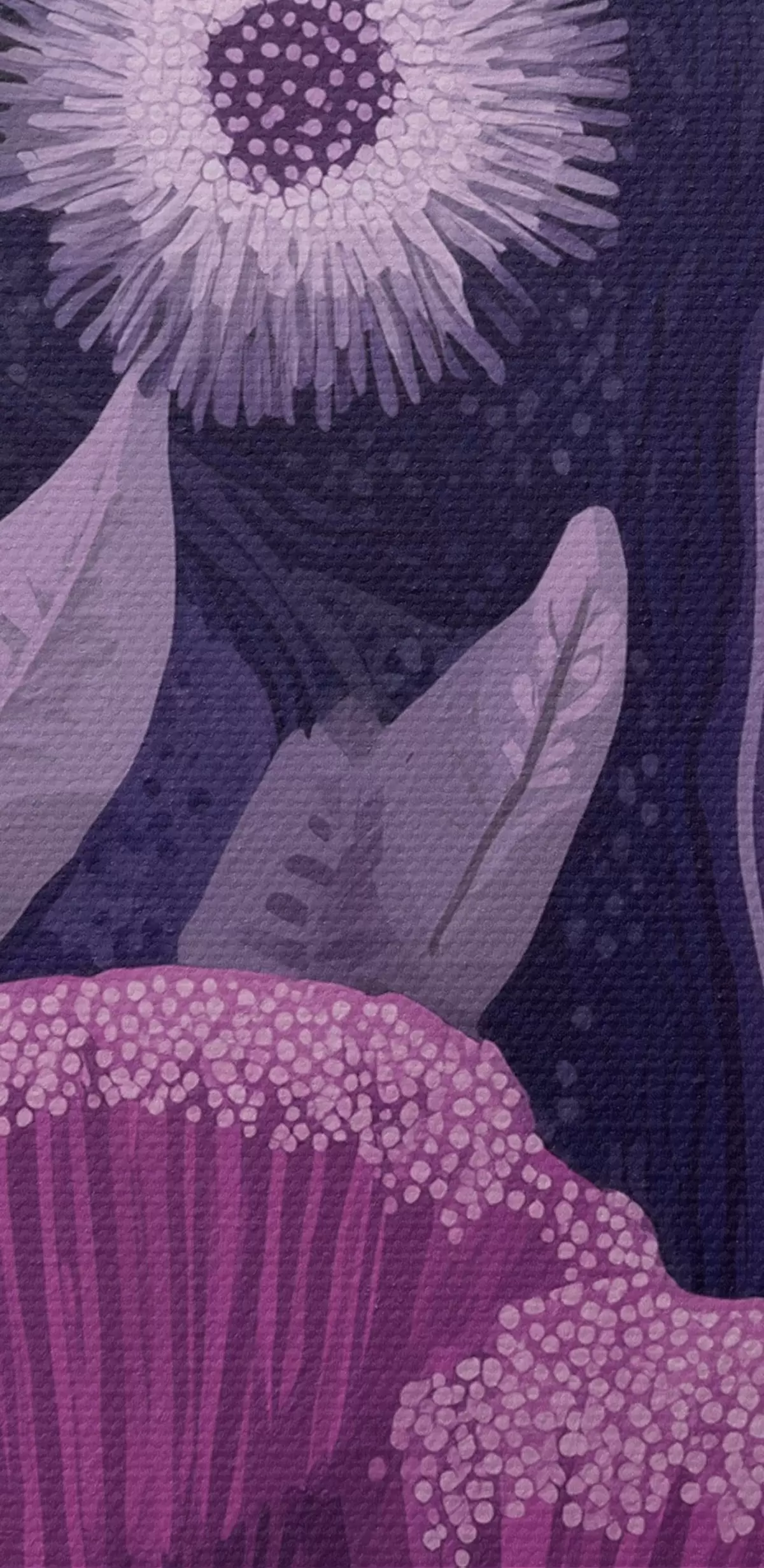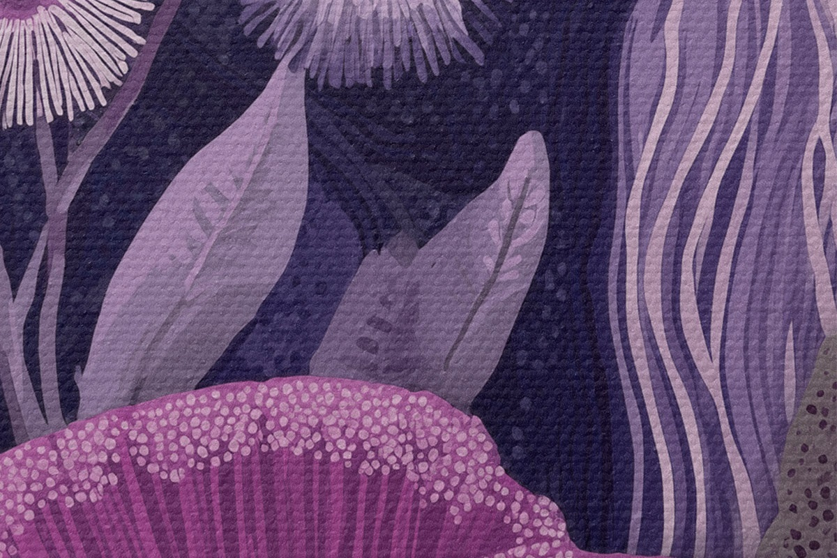 Runde Wandbilder Blumenmuster in lila Farben, detaillierte Zeichnung r44984
