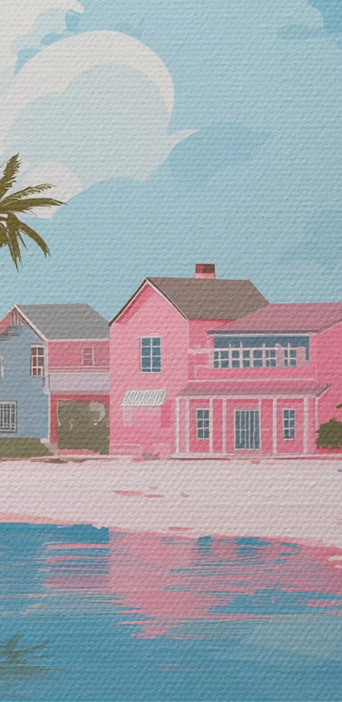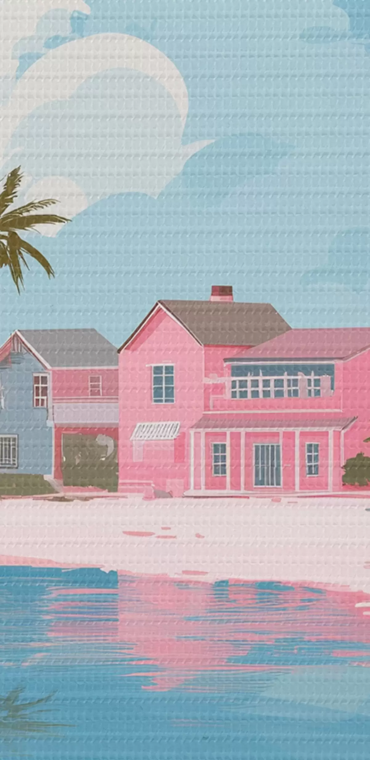 Runde Wandbilder Bunter rosa Sommerstrand Nr r44985