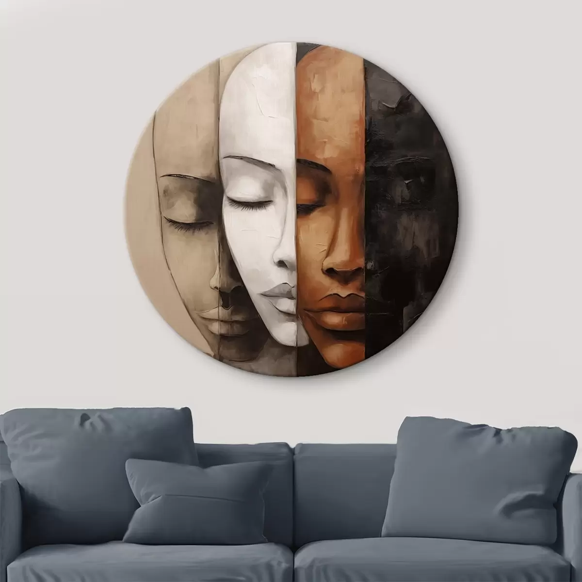 Runde Wandbilder Porträt im abstrakten Stil mit Gesichtern r45003