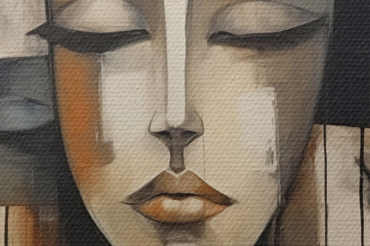 Runde Wandbilder Drei weibliche Gesichter mit geschlossenen Augen im Stil des Kubismus r45008