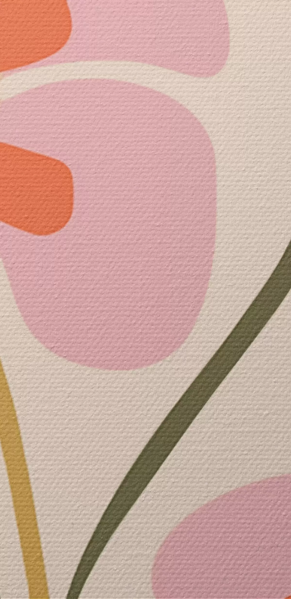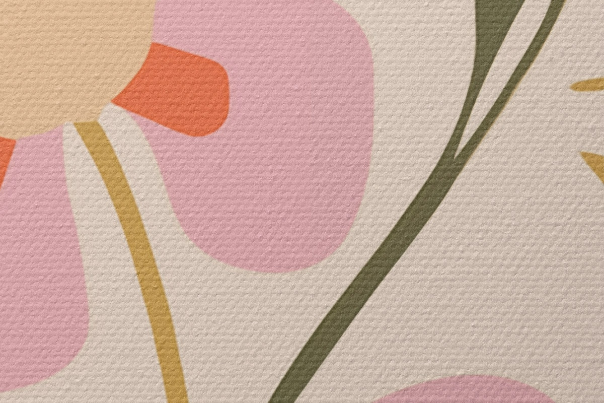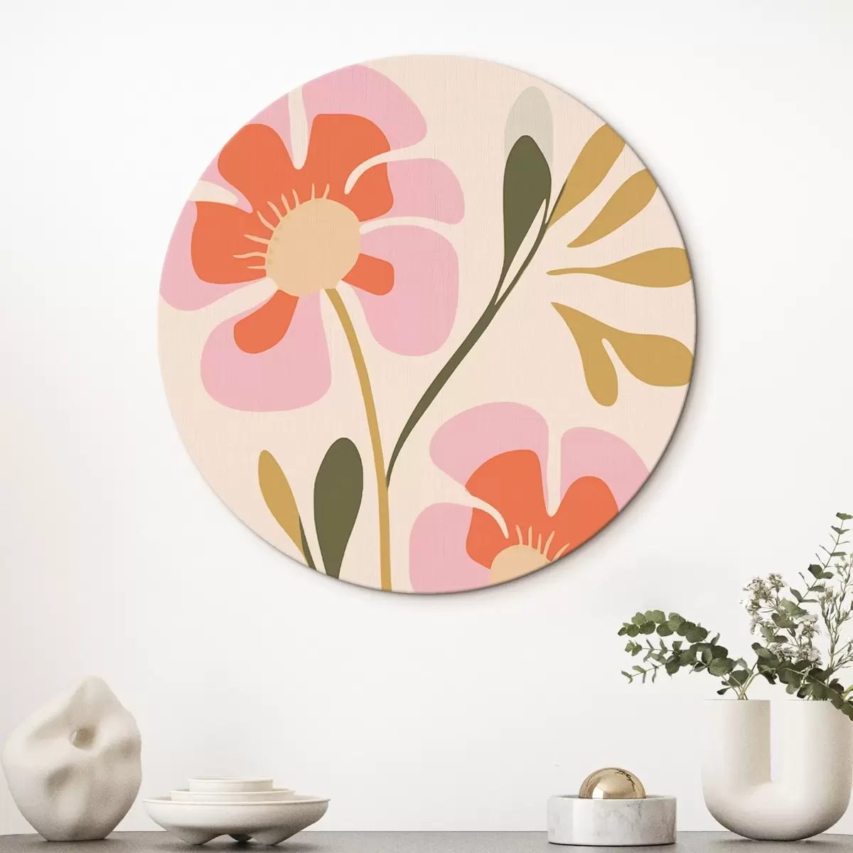 Runde Wandbilder Stilisierte rosa und orange Blumen mit grünen Blättern r45140