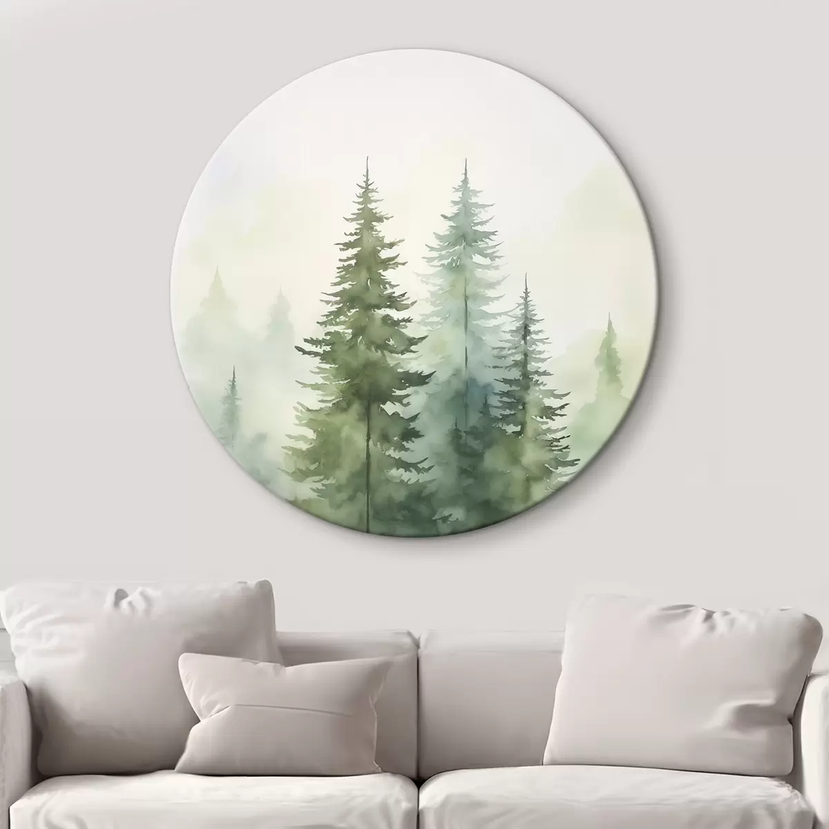 Runde Wandbilder Tannenbäume im Nebel Nr r45208