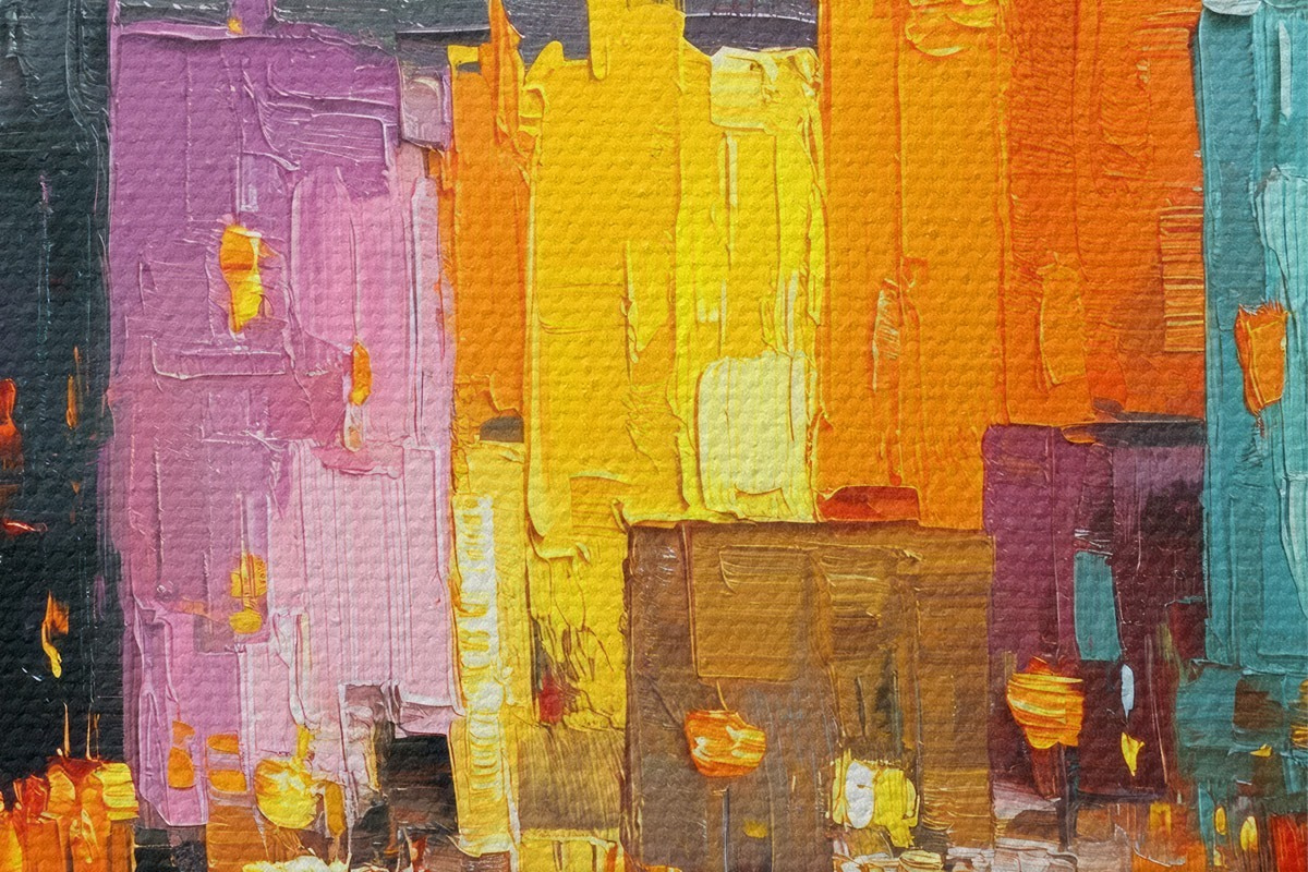 Runde Wandbilder Lichter der Stadt: lebendige Landschaft im Impasto-Stil r45242