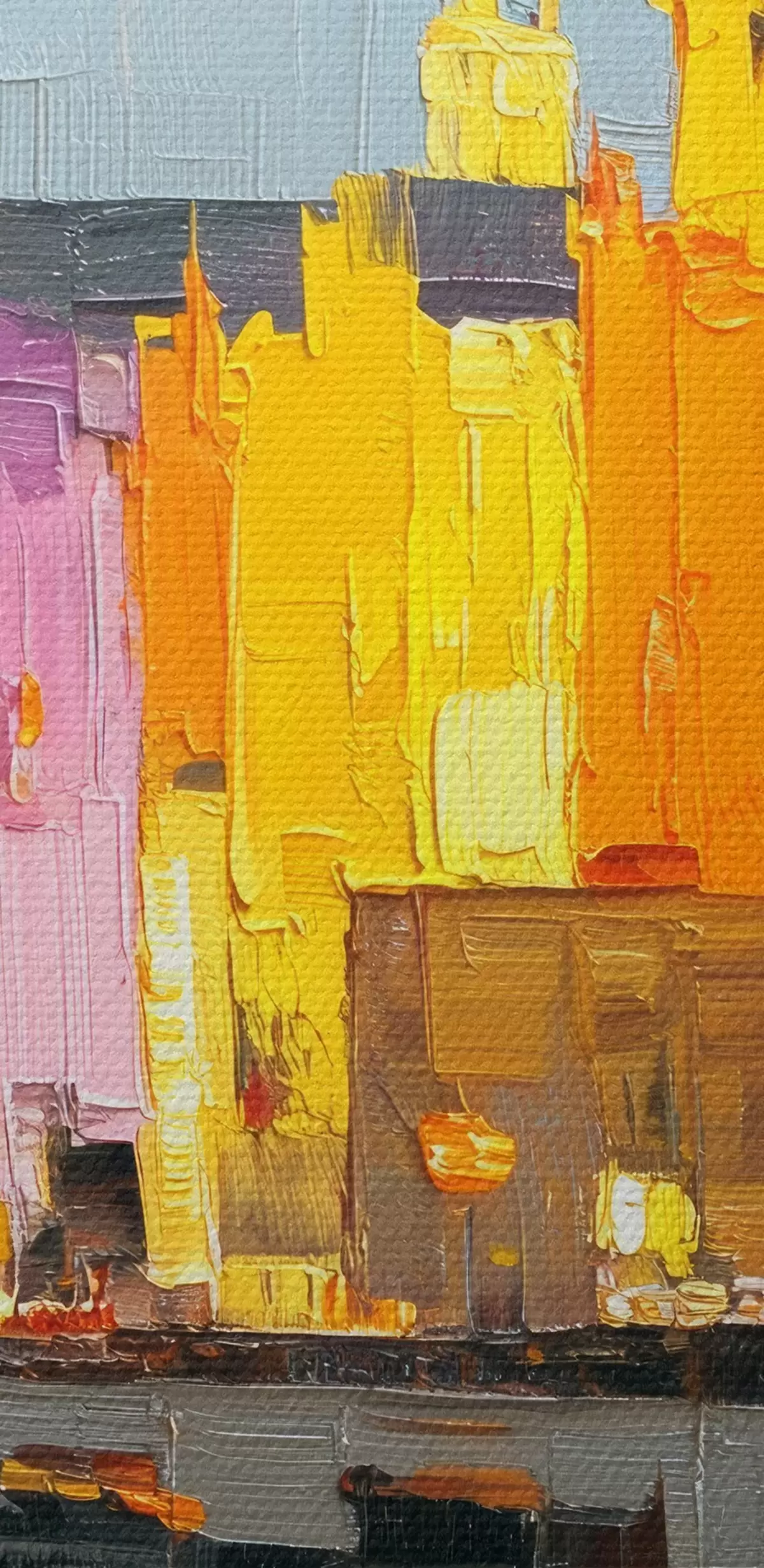 Das Gemälde kann sofort nach Erhalt aufgehängt werden. Das Gemälde wird auf einen 2 cm breiten Holzkeilrahmen aufgespannt.