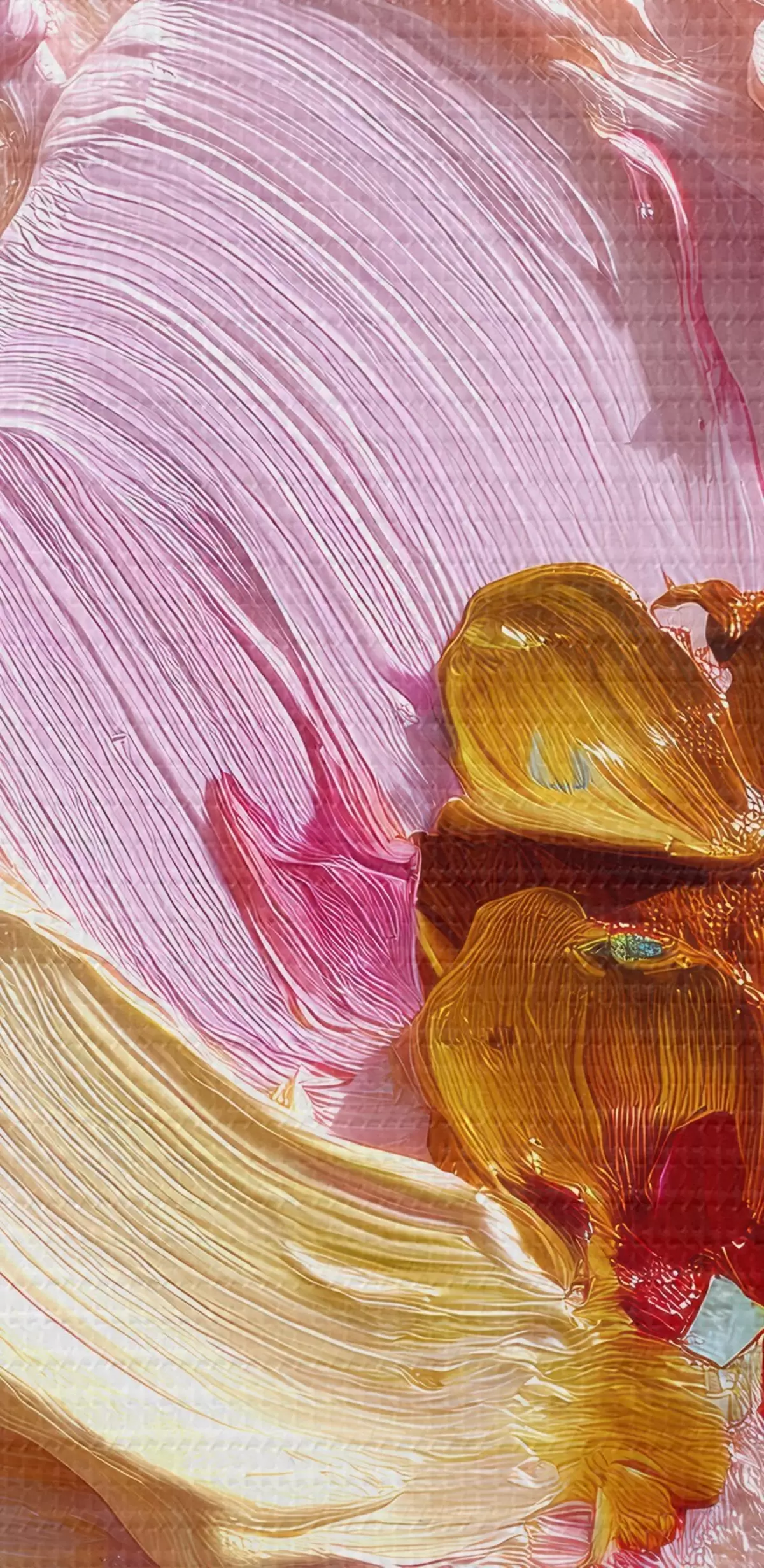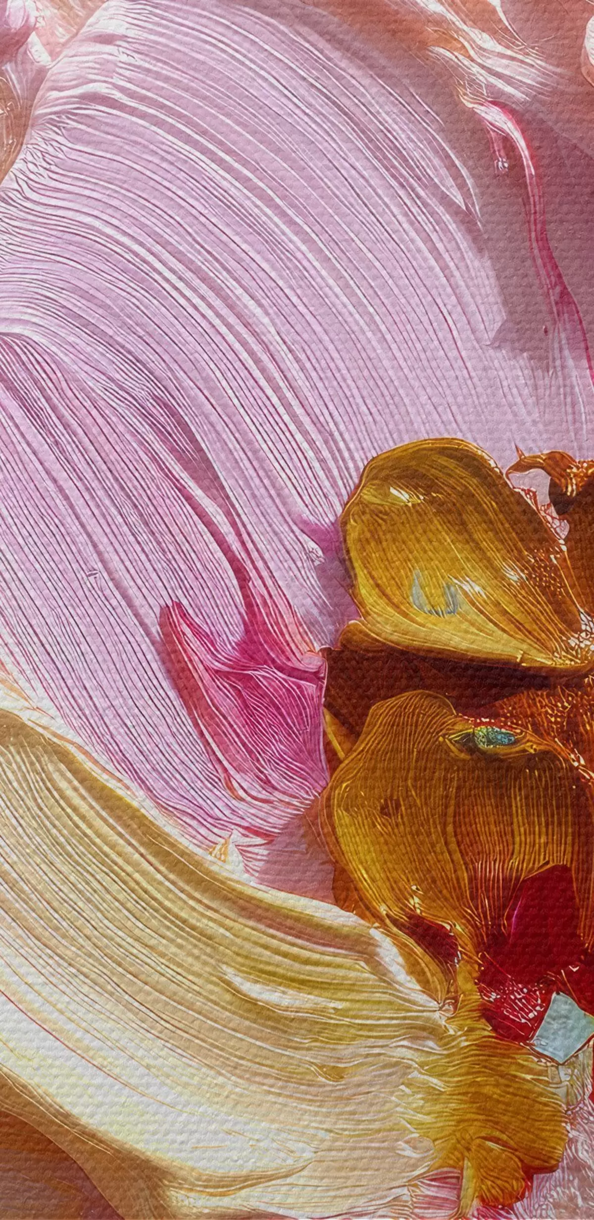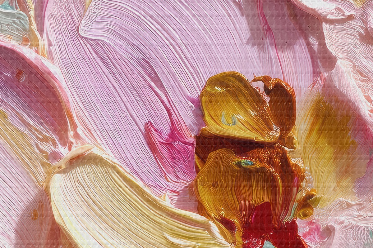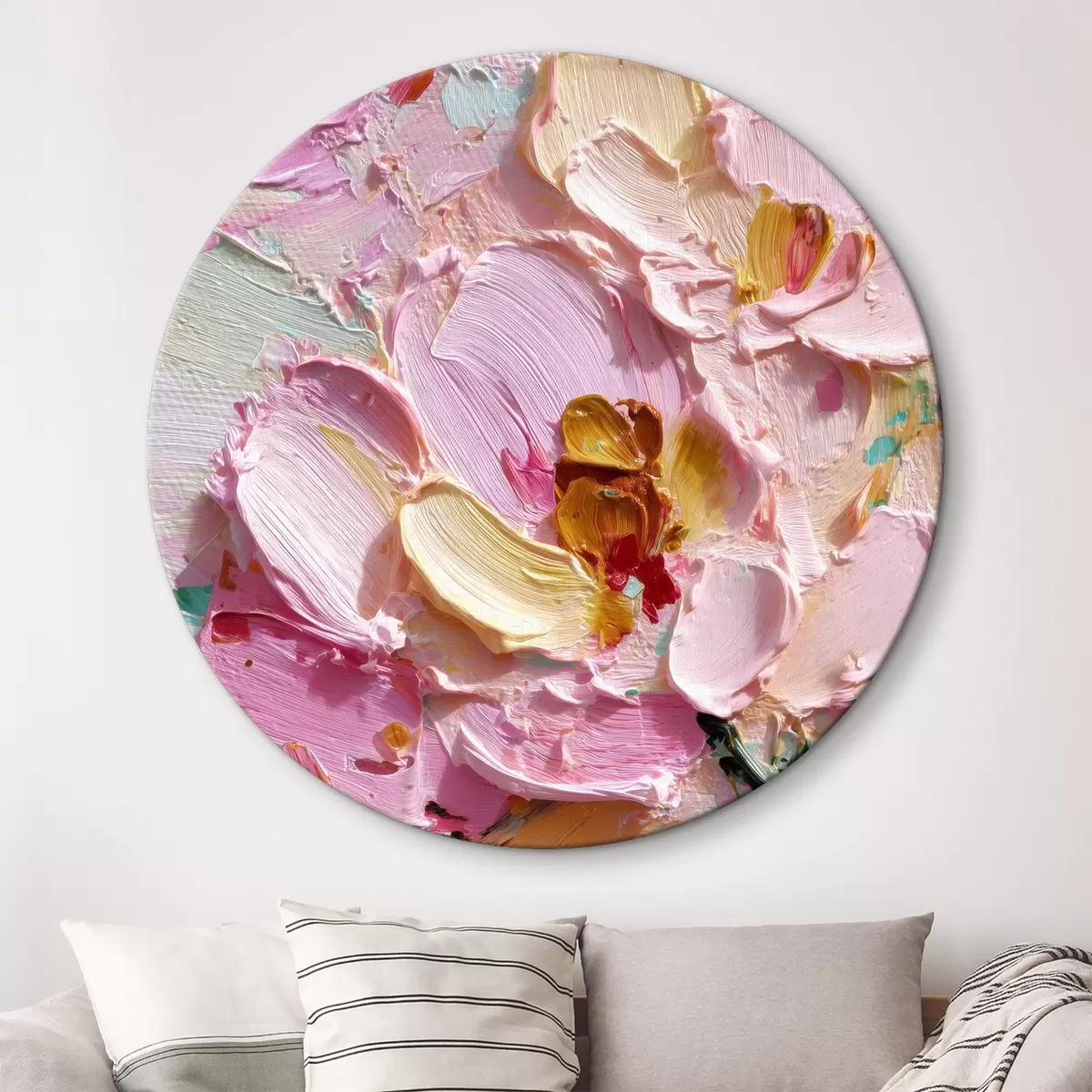 Runde Wandbilder Rosa Magnolien: Strukturierte Malerei mit dimensionalen Strichen Nr r45249