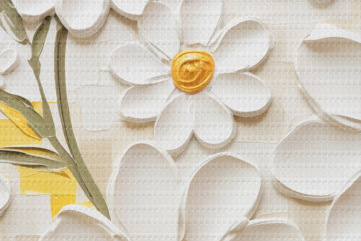 Runde Wandbilder Blumenkomposition im volumetrischen Stil mit Akzenten r45267