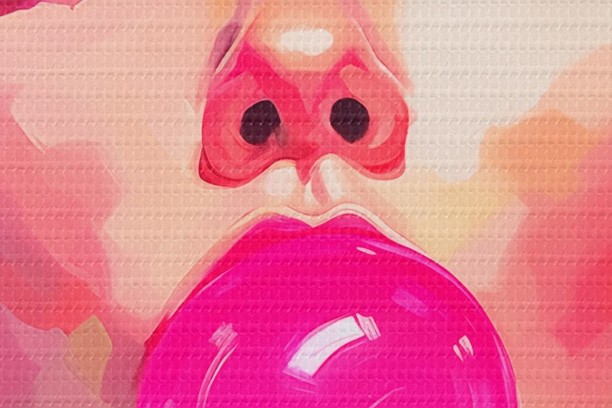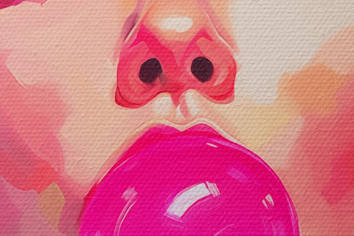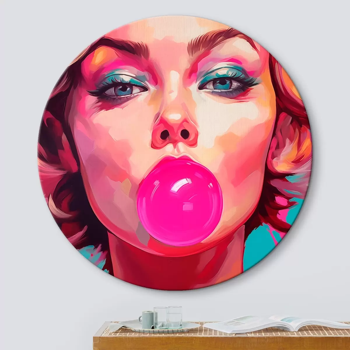Runde Wandbilder Mädchen mit rosa Kaugummi Nr r45321