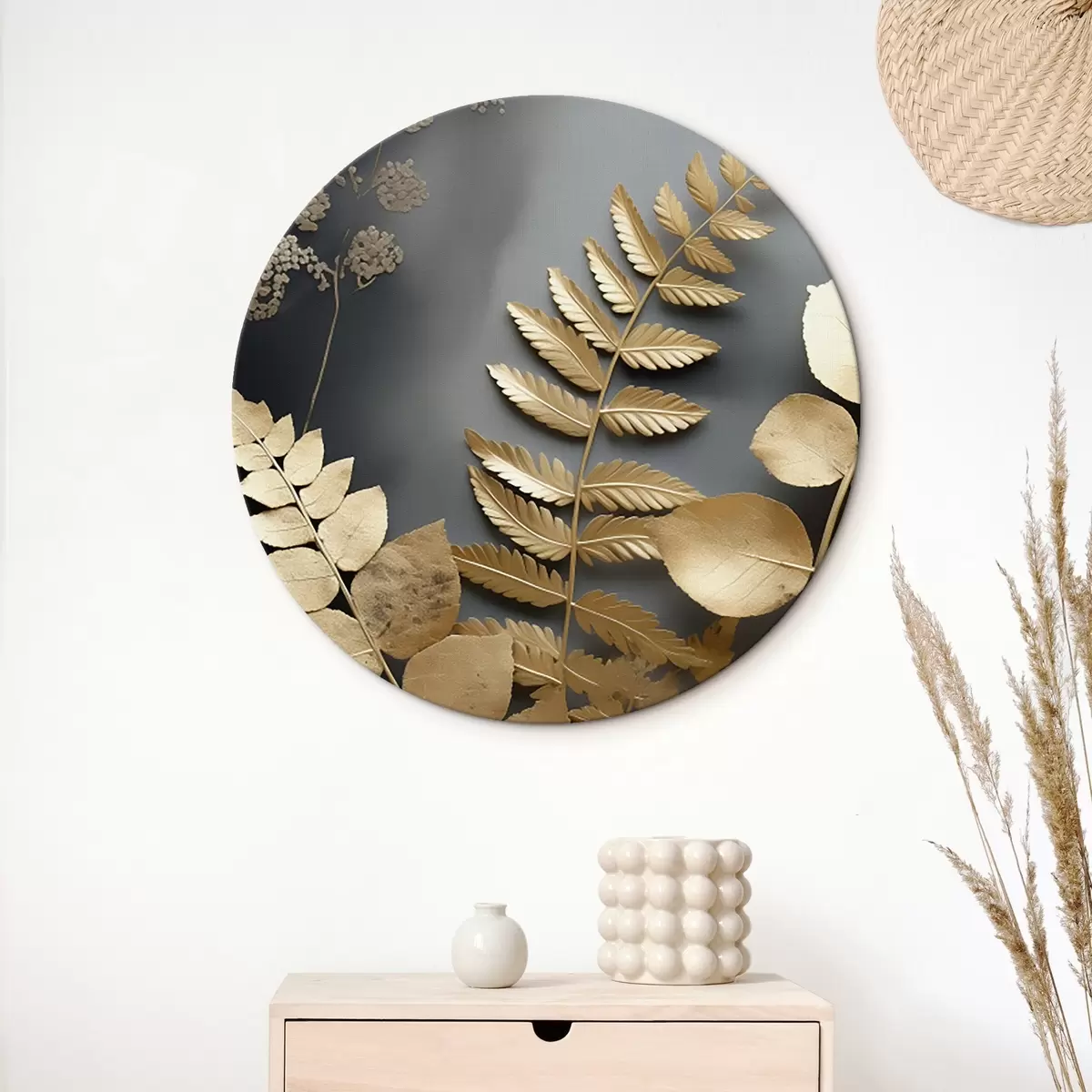 Runde Wandbilder Eukalyptuszweige und tropische Blätter auf einem dunklen Hintergrund Nr r45333