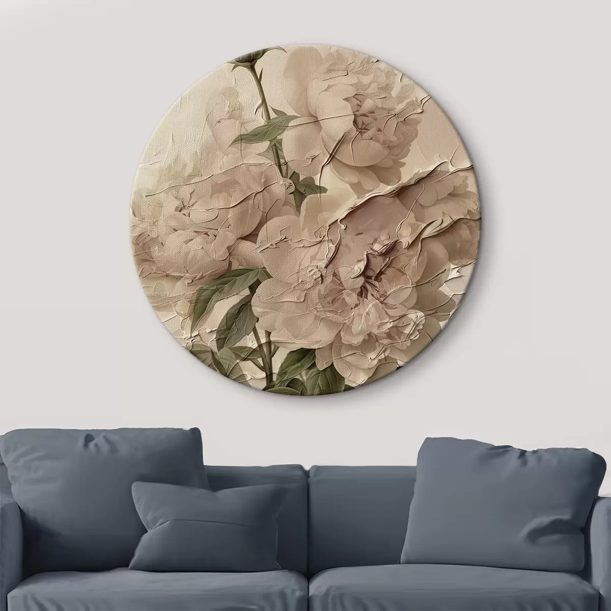 Runde Wandbilder Üppiger Blumenstrauß aus Pfingstrosen auf hellem Hintergrund Nr r45337