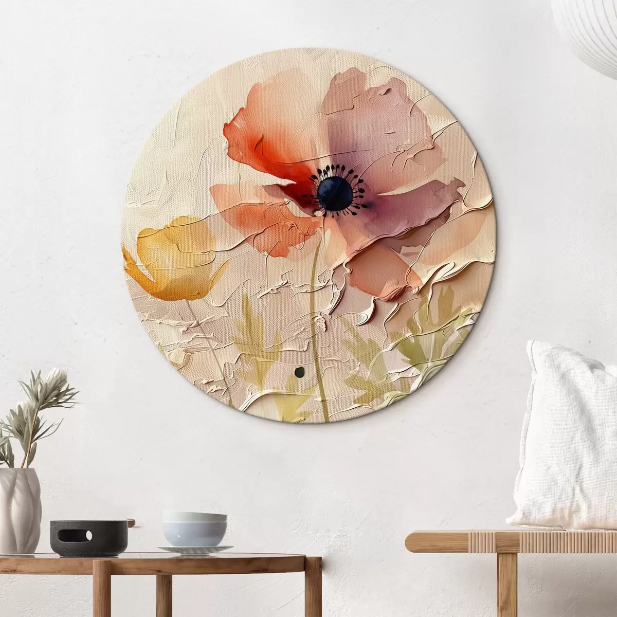 Runde Wandbilder Transluzentes Blumenarrangement auf hellem Hintergrund r45338