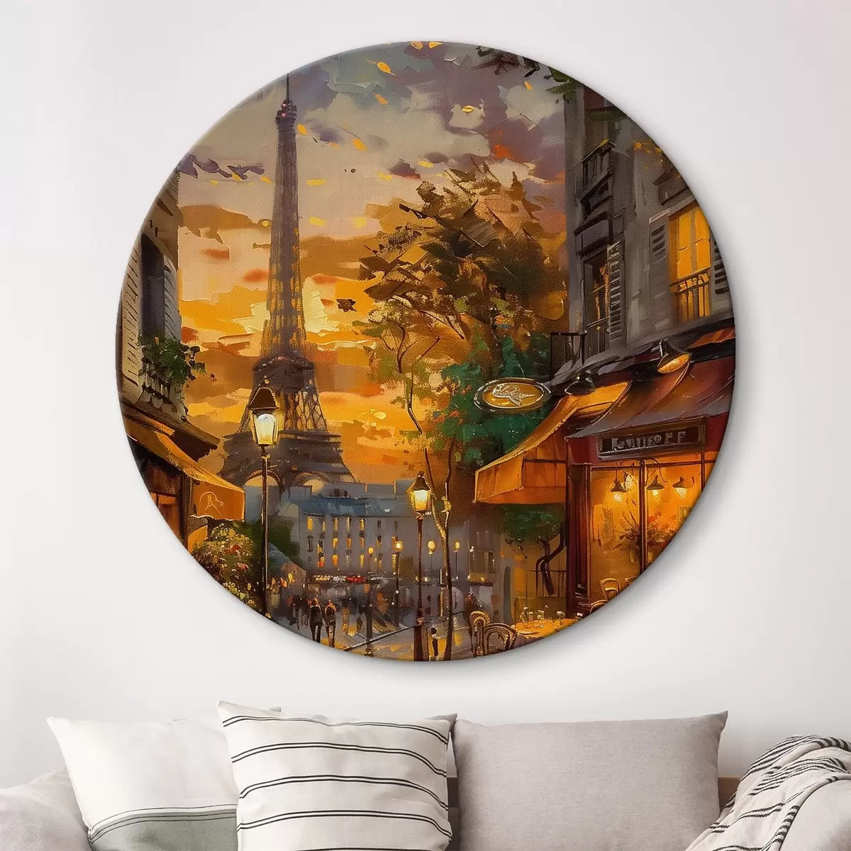 Runde Wandbilder Straße in Paris, Ölgemälde-Effekt r45340