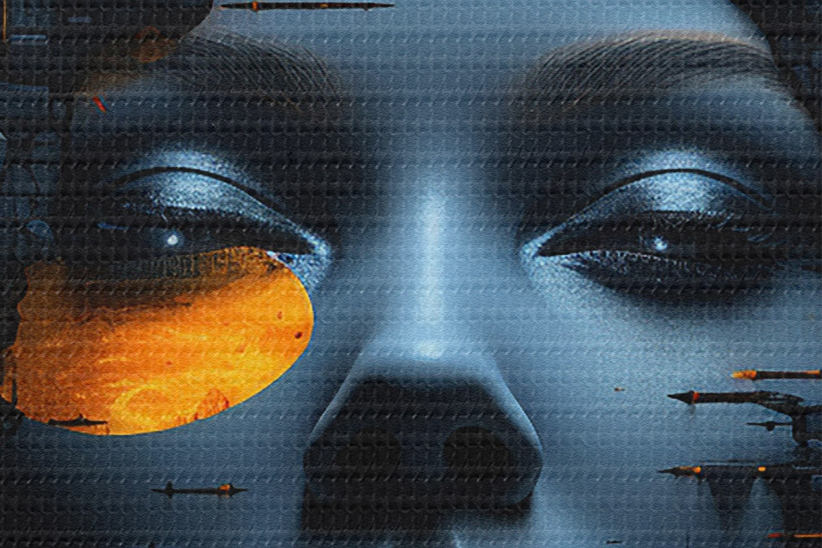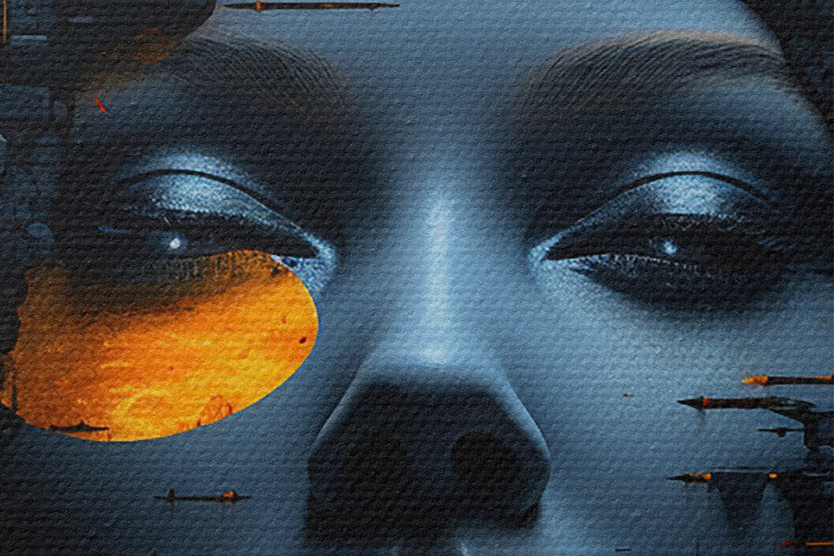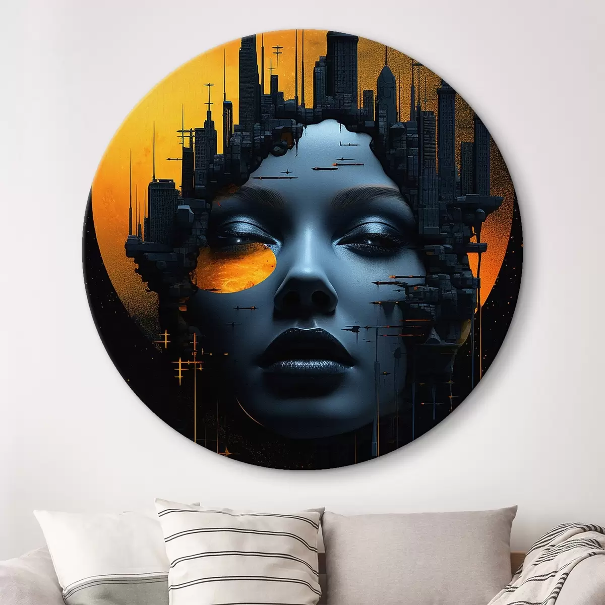 Runde Wandbilder Menschen, Mädchengesicht auf einem Stadthintergrund, abstrakt r45341