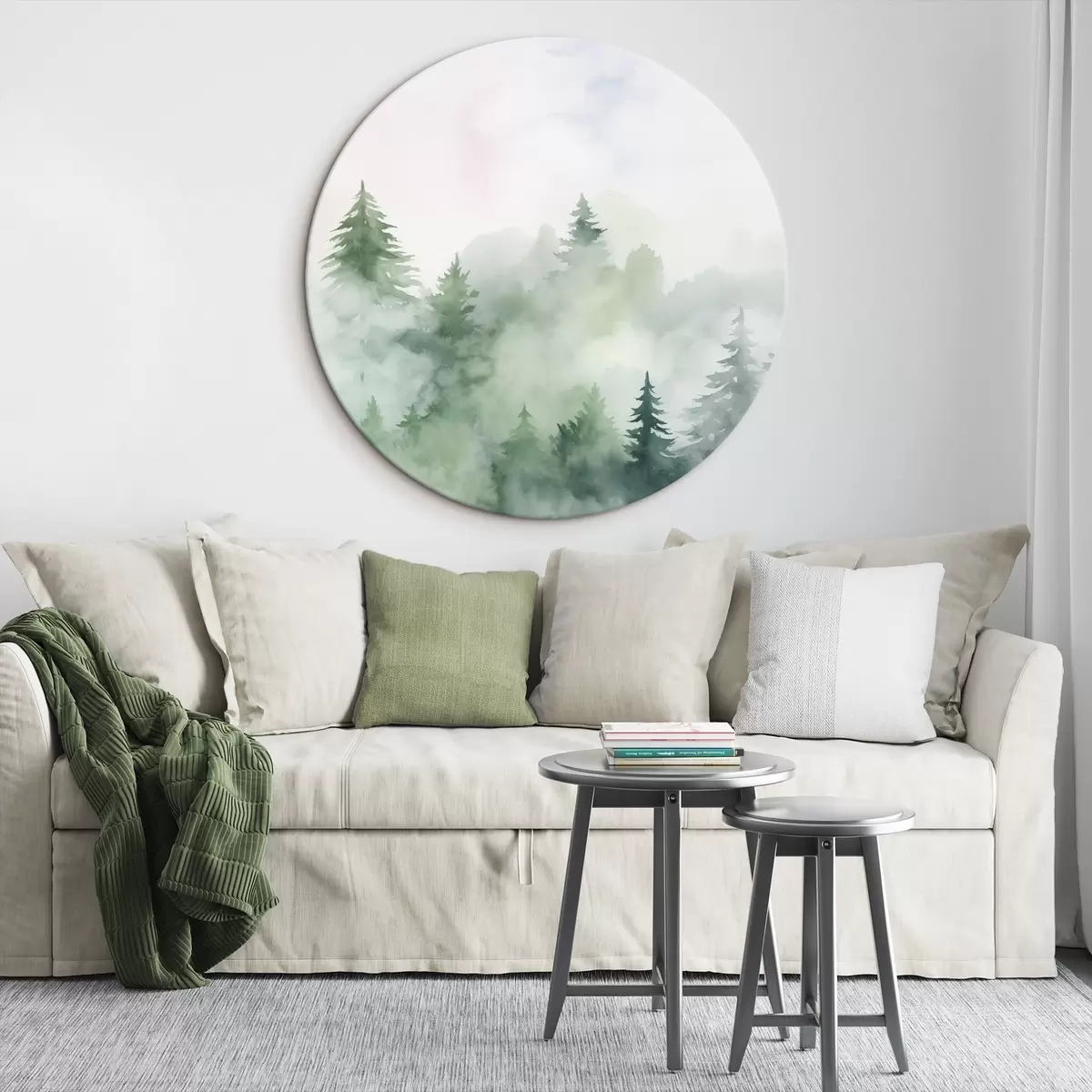 Runde Wandbilder Wald im Nebel Nachahmung von Aquarell r45343
