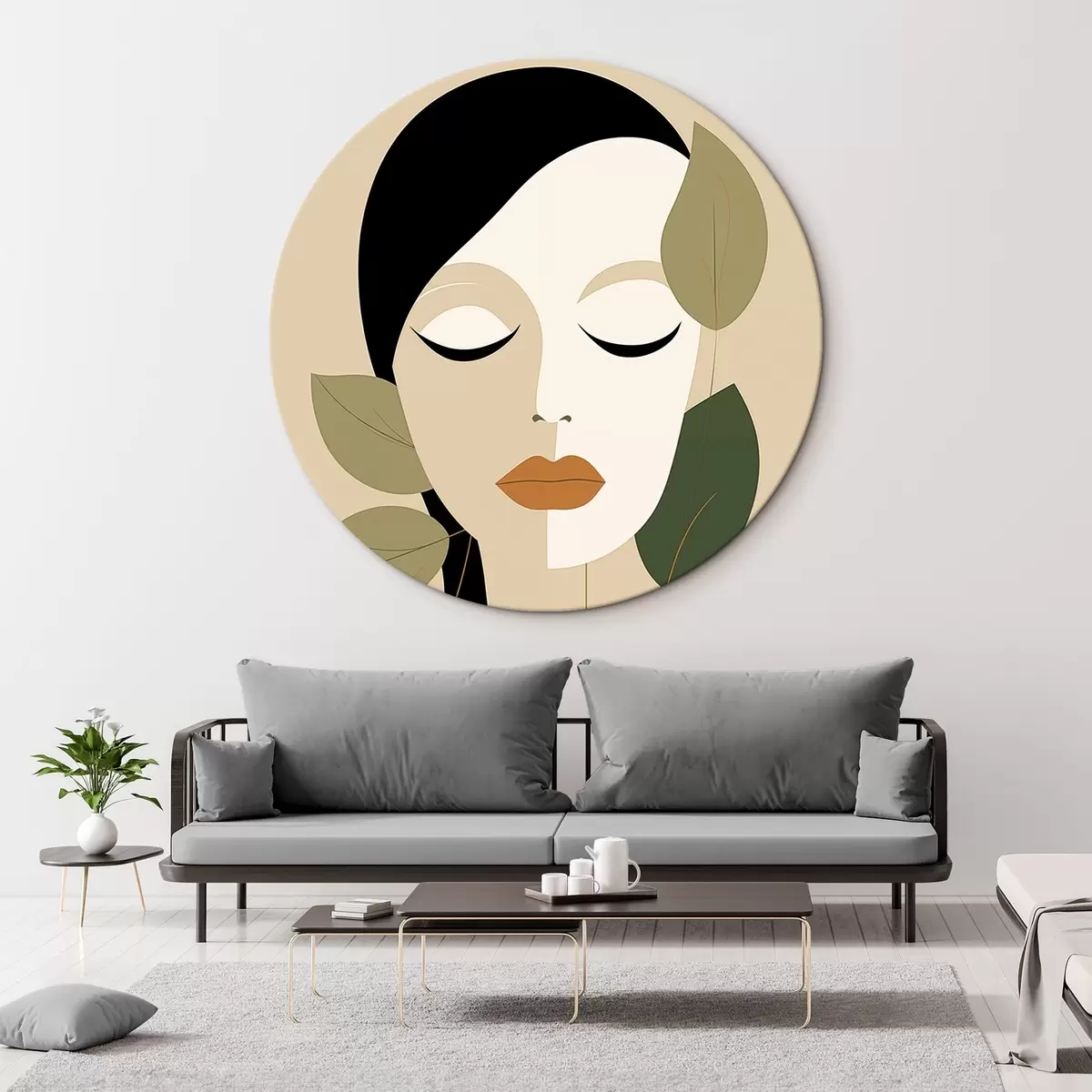 Runde Wandbilder Mädchen mit Blättern Nr r45389