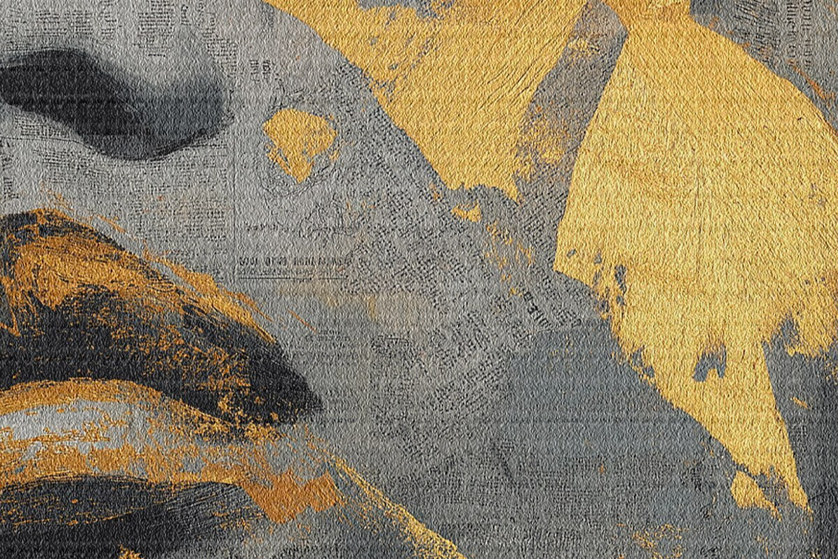 Runde Wandbilder Gemischtes Medienporträt mit Zeitungsfragmenten und dekorativen Pinselstrichen r45419
