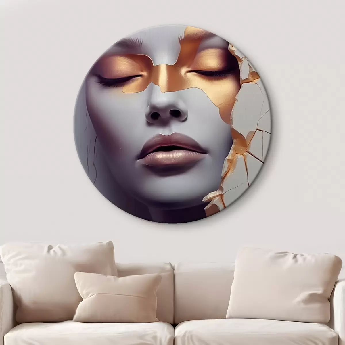 Runde Wandbilder Gesicht in Rissen r45462