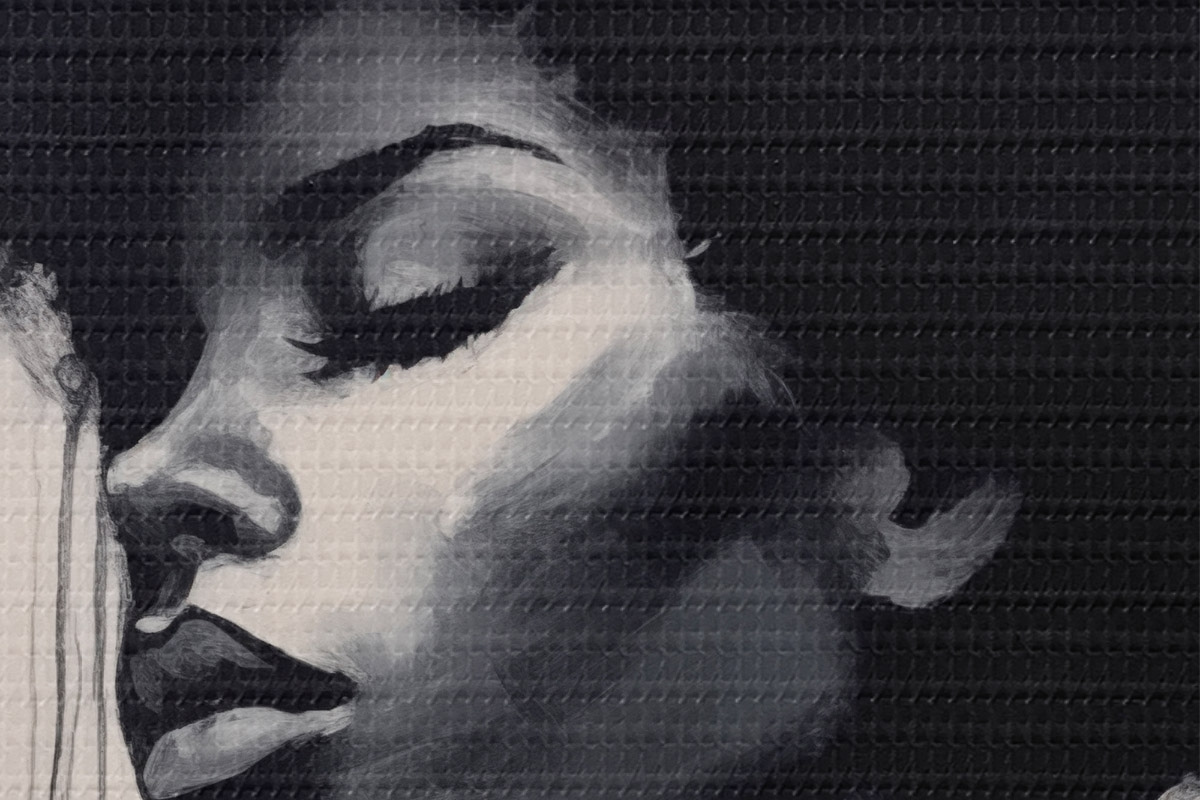 Das feine Fadengeflecht auf dieser Leinwand ähnelt der Oberfläche von professionellen Künstlerleinwänden.
