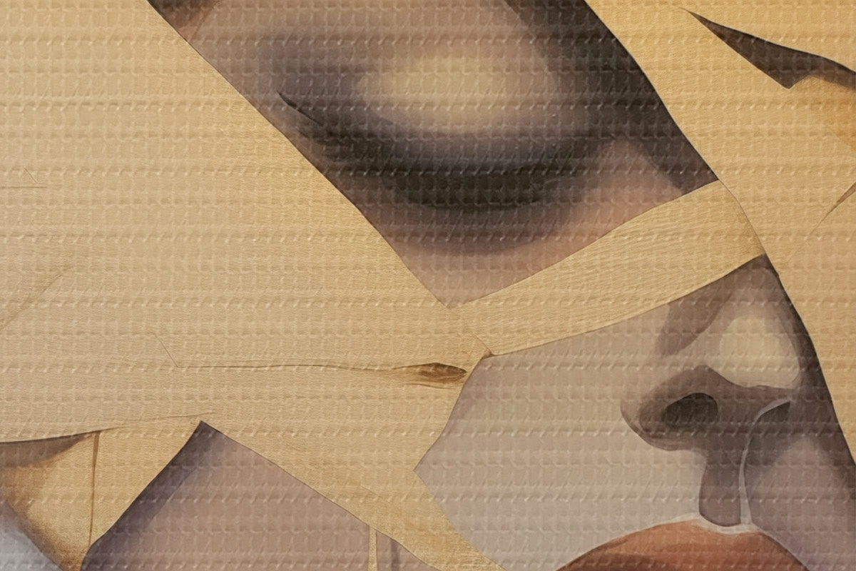 Um die Leinwand auf Keilrahmen zu spannen, ohne das Bild zu beschädigen, verwenden wir ein gespiegeltes Bild.