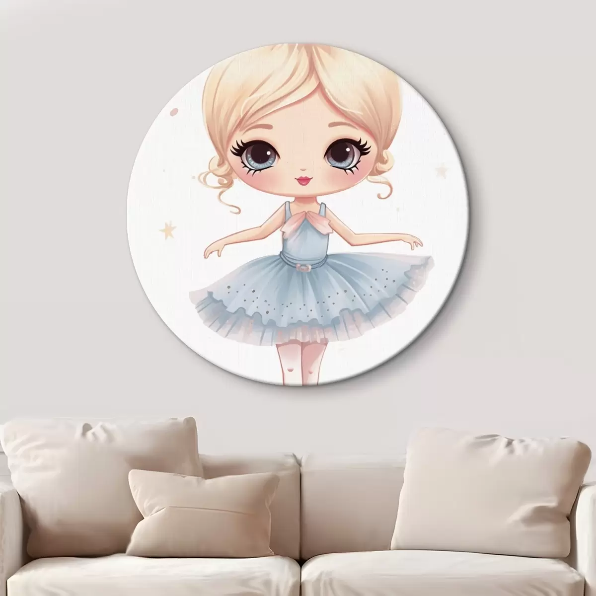 Runde Wandbilder Ballerina-Puppe in einem blauen Kleid mit Schleife Nr r45481