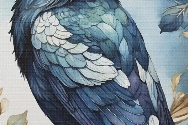 Runde Wandbilder Blauer Vogel auf einem Zweig mit Blättern im Aquarellstil Nr r45483