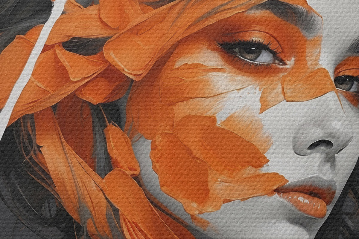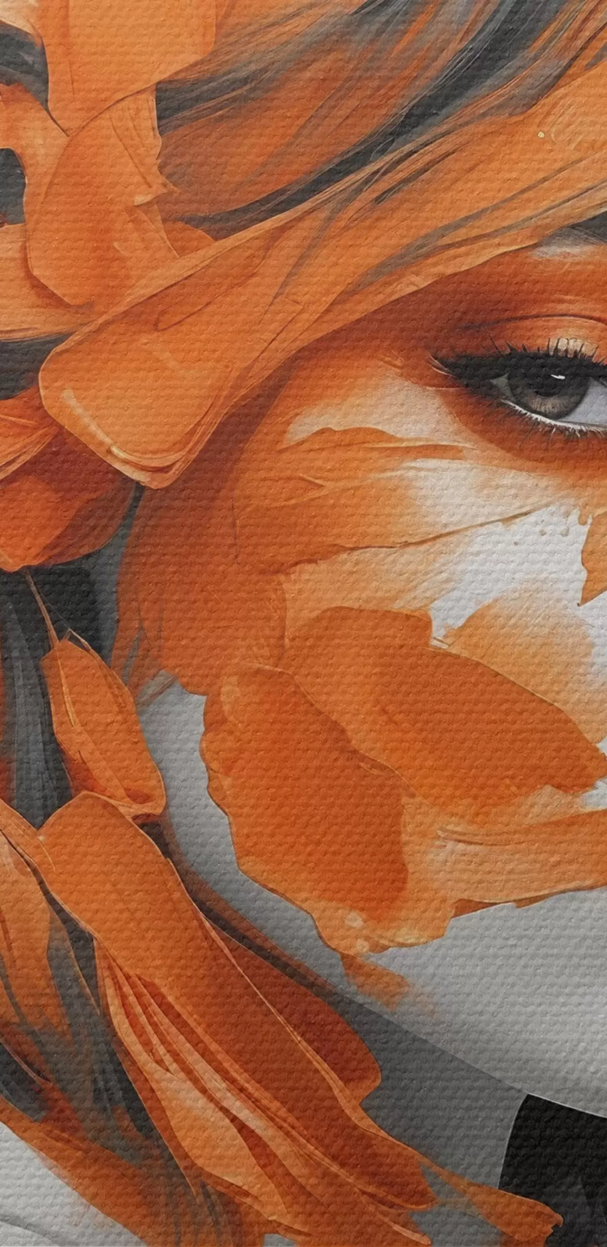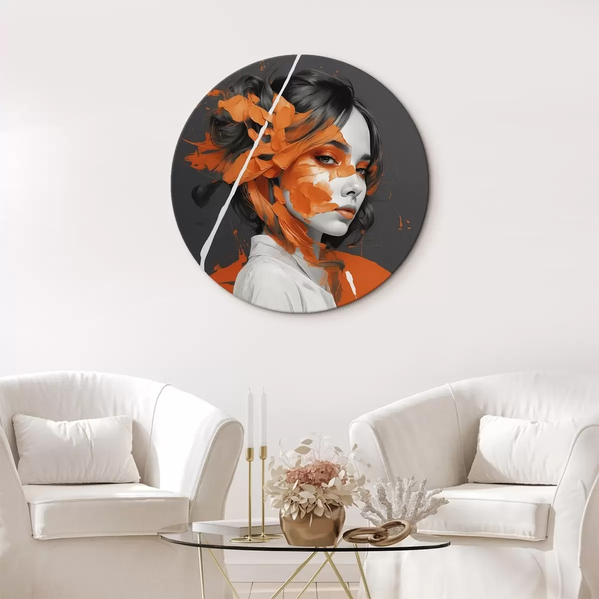 Runde Wandbilder Porträt einer Frau mit orangefarbenen Pinselstrichen Nr r45489