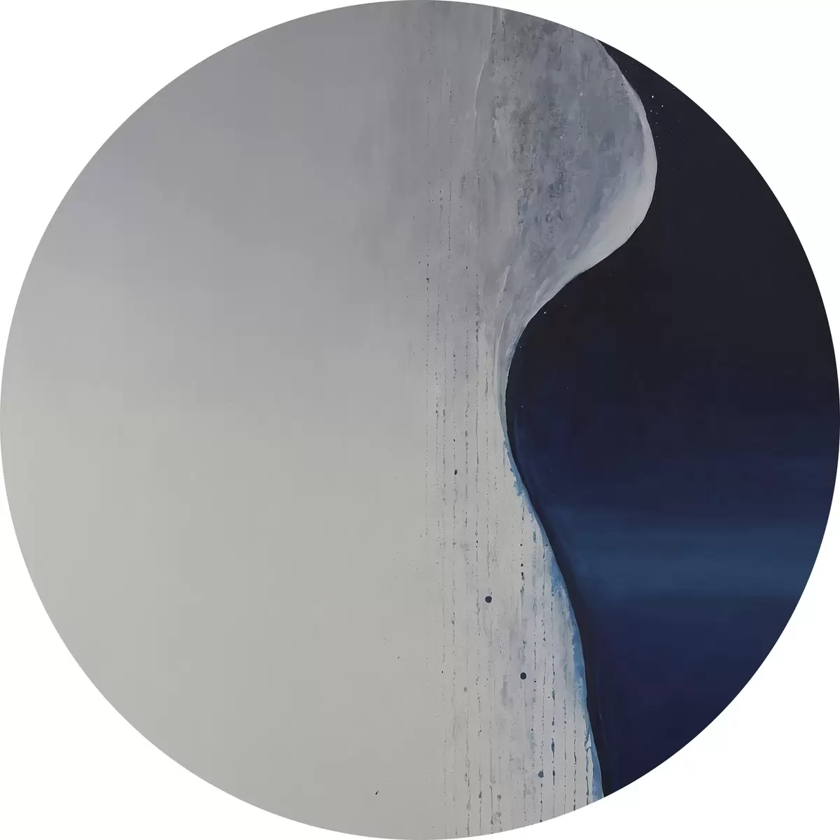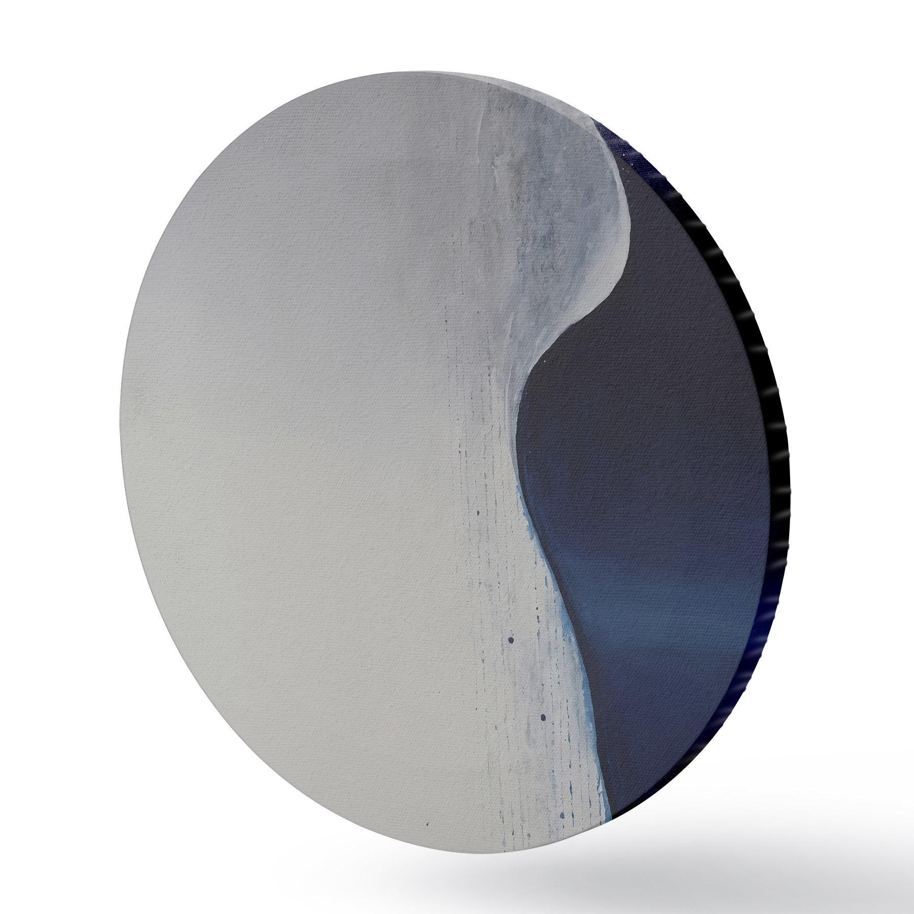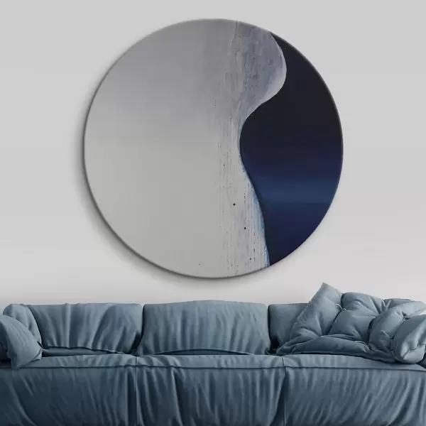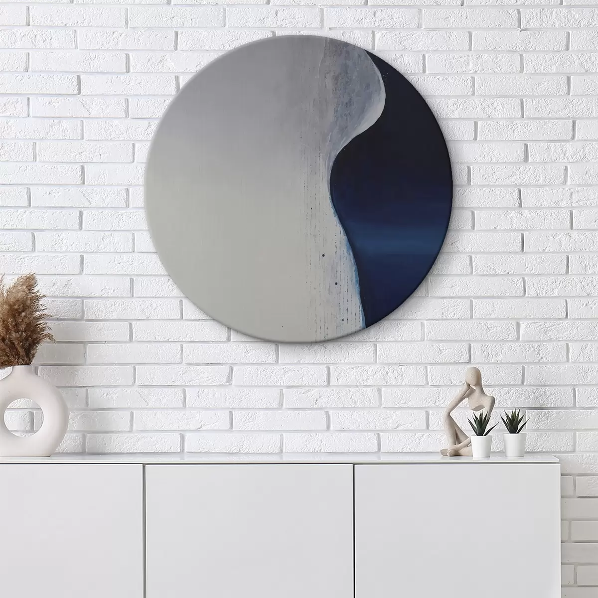Runde Wandbilder Abstrakte Malerei in den Farben Weiß, Blau und Dunkelblau r45493