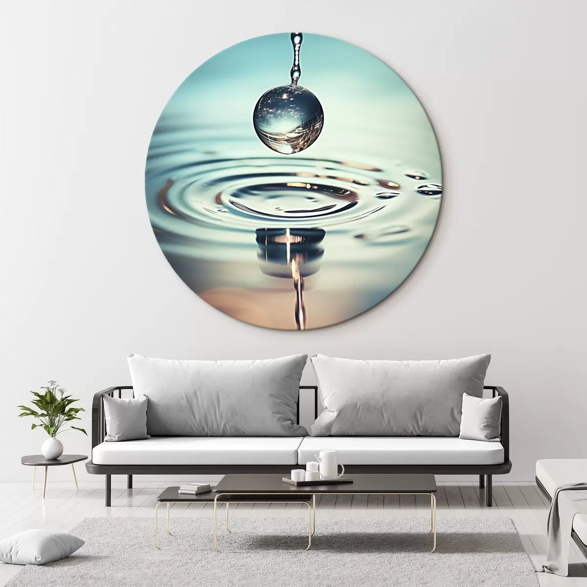 Runde Wandbilder Ein Wassertropfen, der mit Lichtblitzen fällt r45501