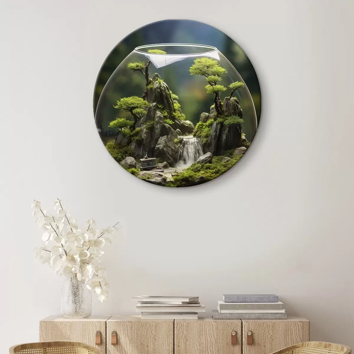Runde Wandbilder Miniaturlandschaft mit Wasserfall in einer Glaskugel r45502