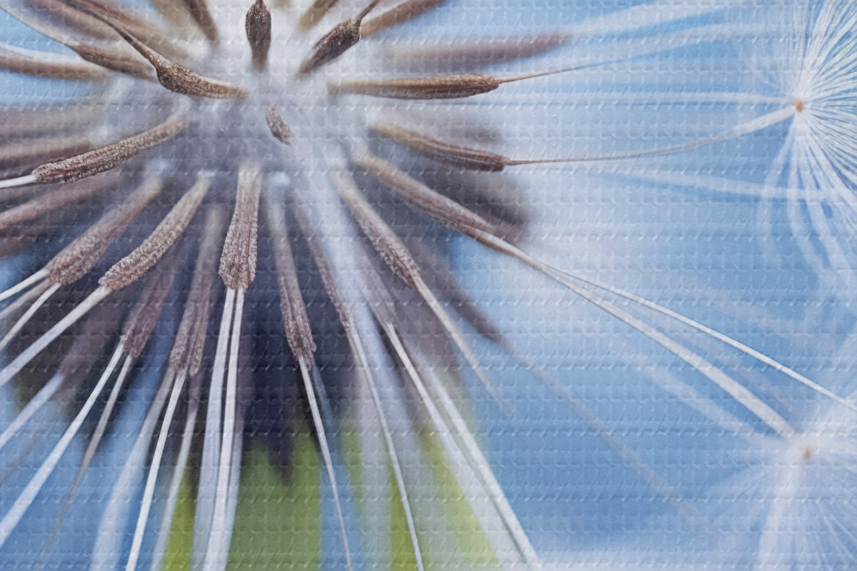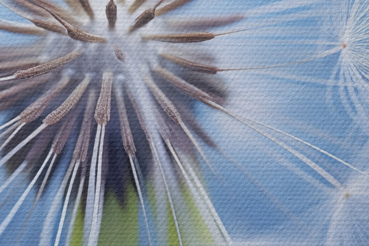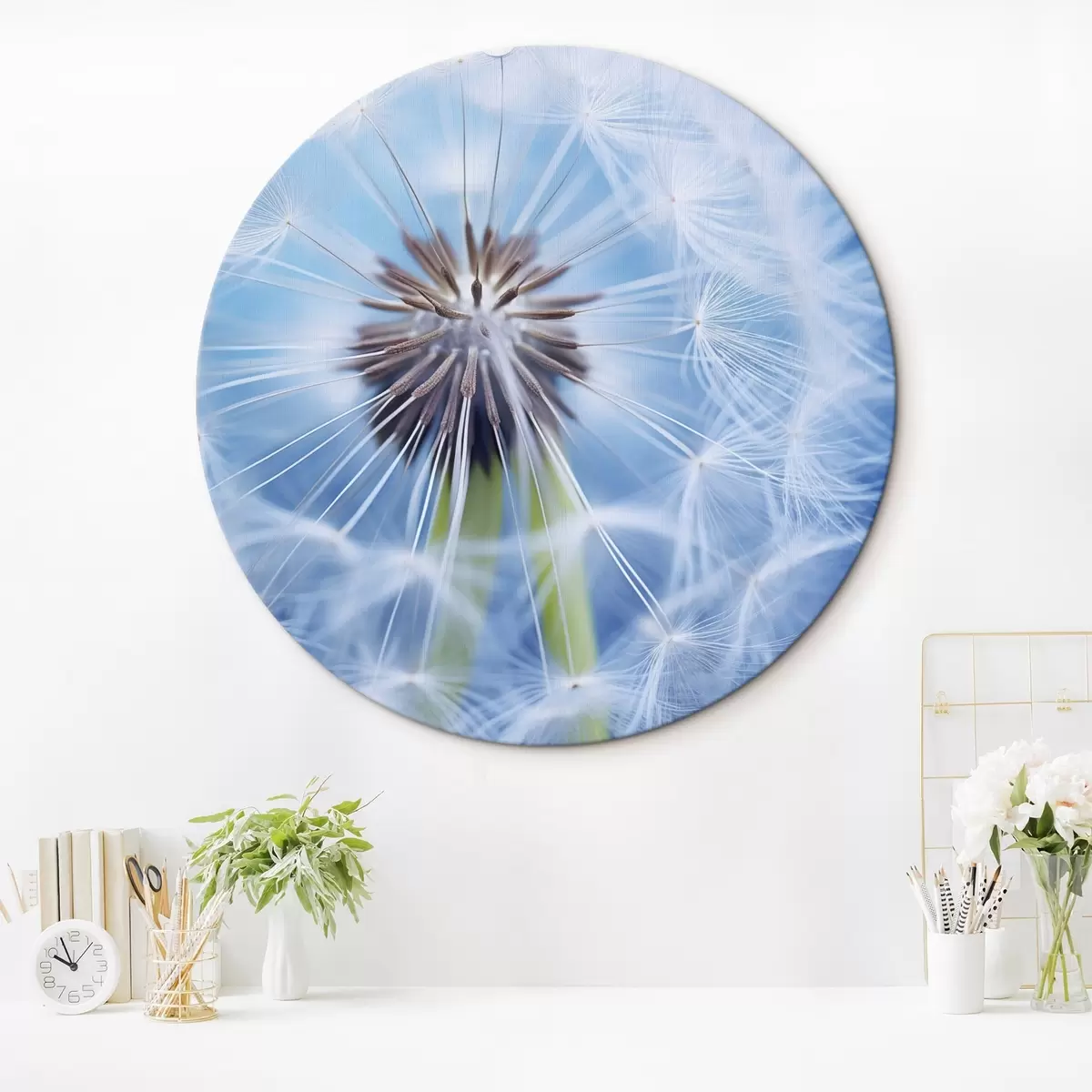 Runde Wandbilder Makroaufnahme einer Pusteblume auf blauem Hintergrund r45517