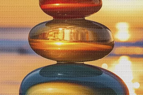 Runde Wandbilder Gestapelte Steine vor der Kulisse des Sonnenuntergangs Nr r45520