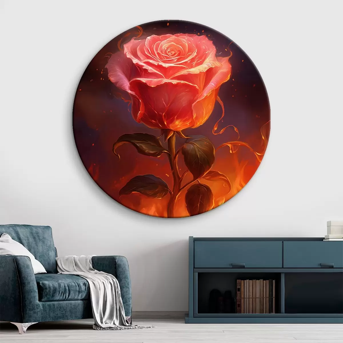 Runde Wandbilder Rote Rose zwischen Feuer und Funken Nr r45523