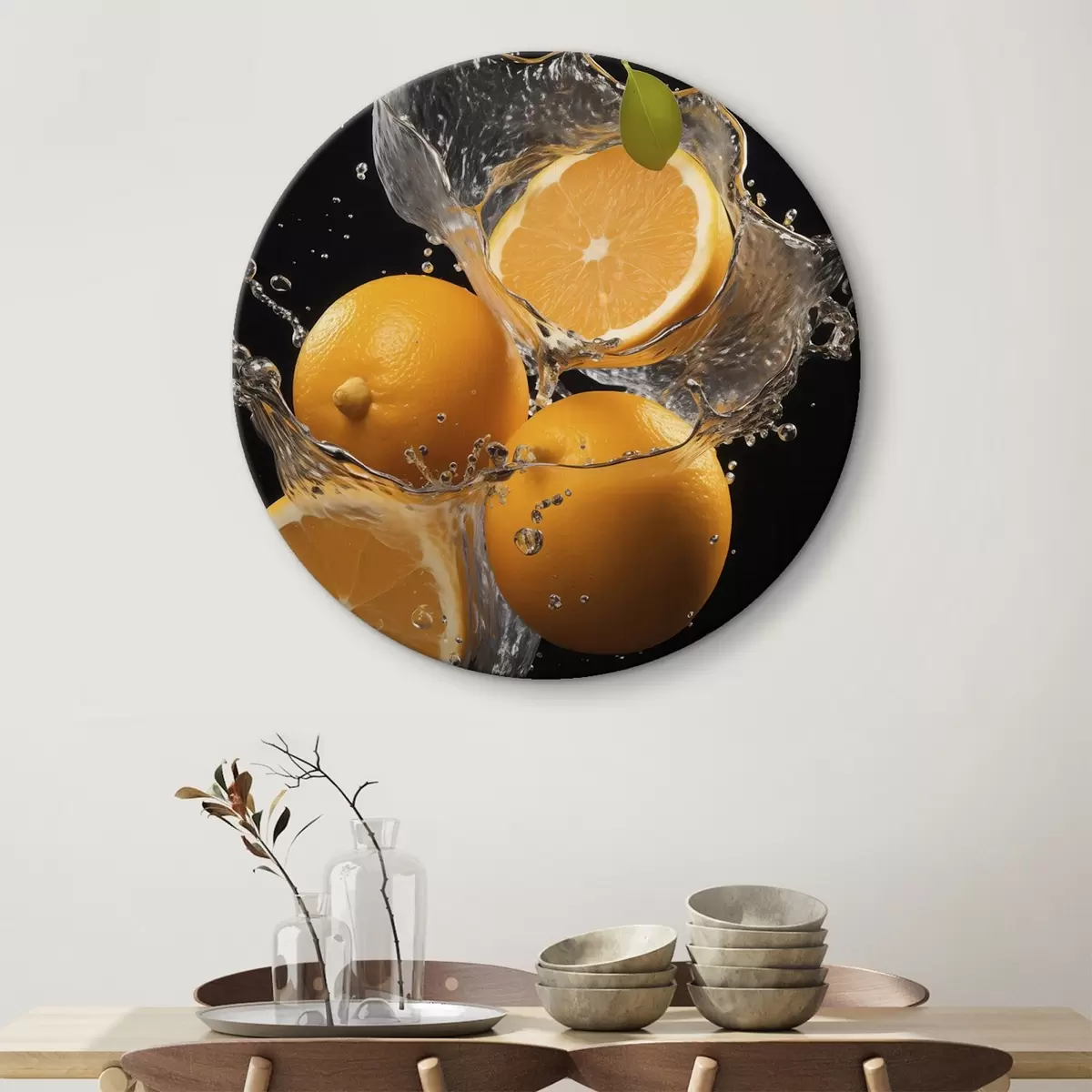 Runde Wandbilder Saftige Orangen in Wasserspritzern Nr r45526