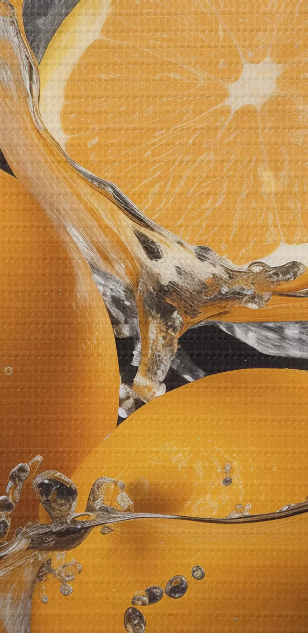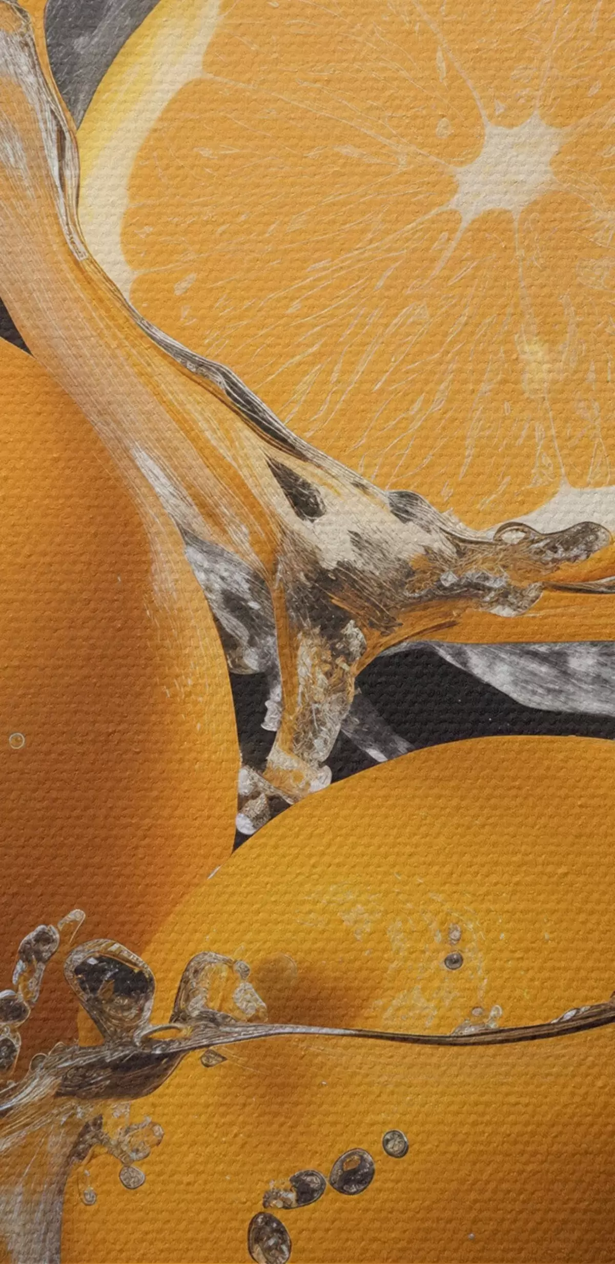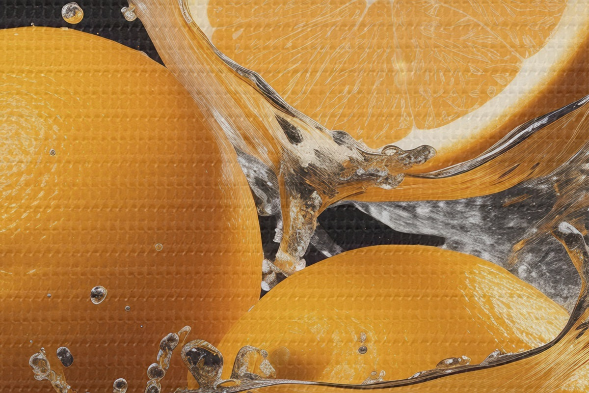 Runde Wandbilder Saftige Orangen in Wasserspritzern r45526