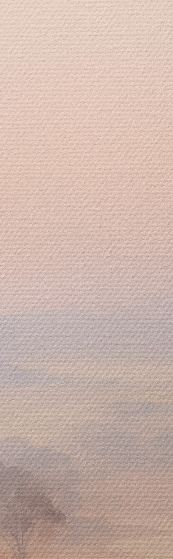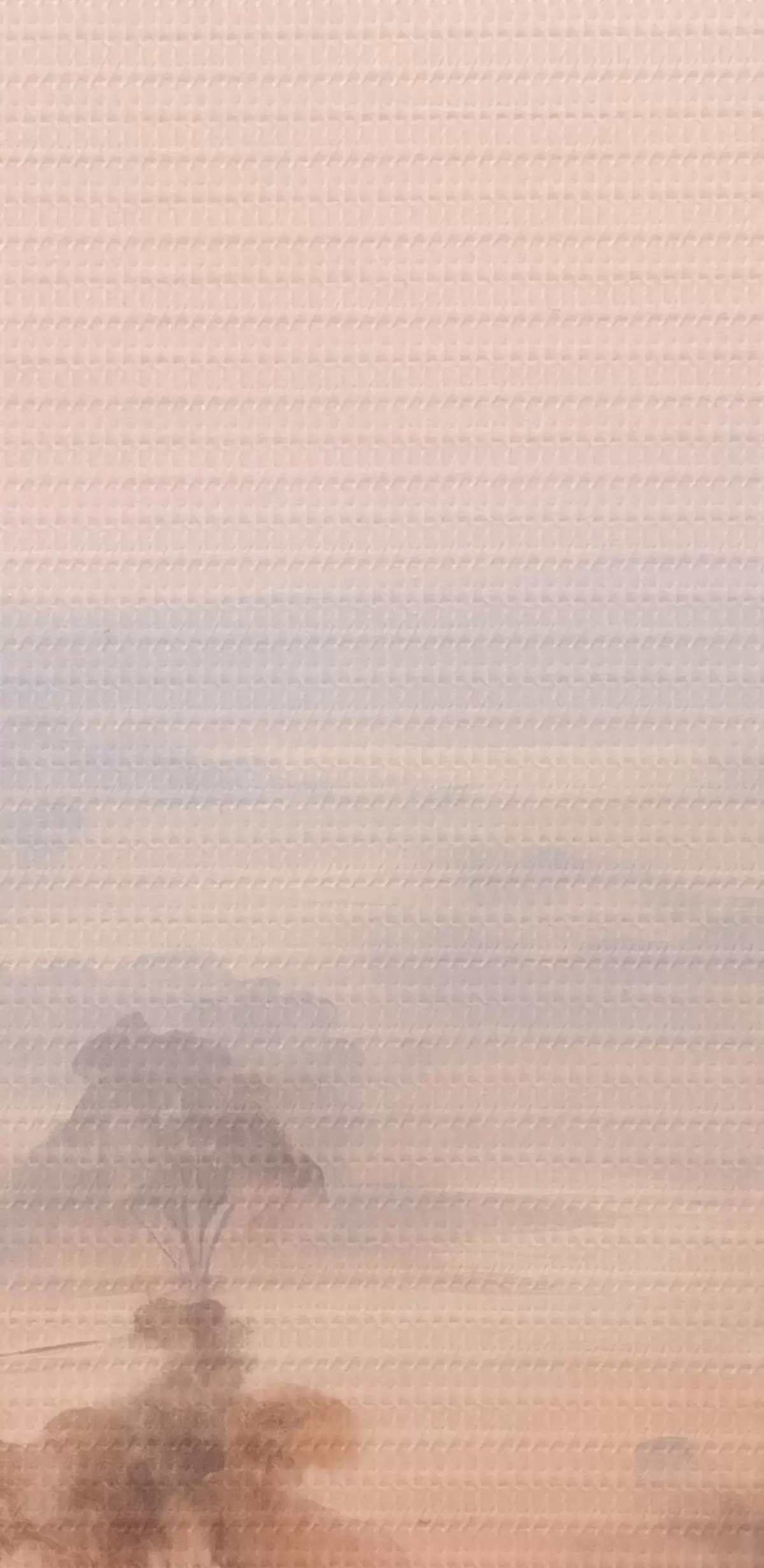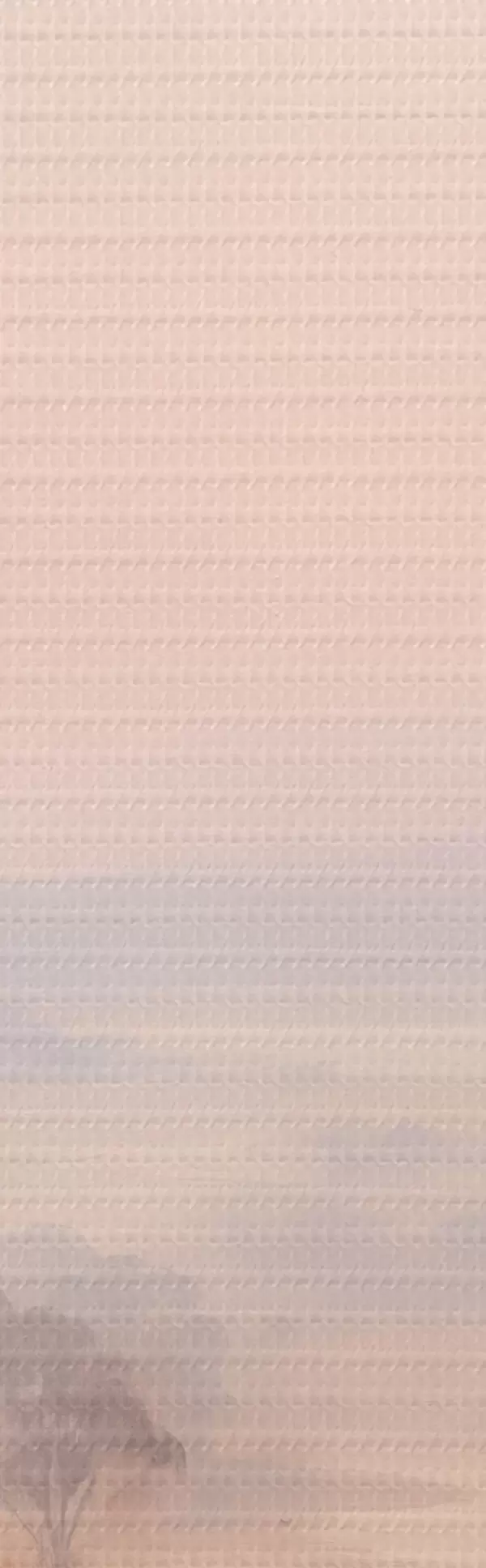 Runde Wandbilder Eine Landschaft mit Sträuchern und Bäumen in Pastelltönen von Rosa, Orange und Braun, mit Bergen im Hintergrund r45554