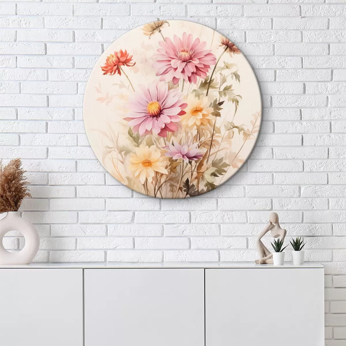 Runde Wandbilder Ein Blumenstrauß aus bunten Blumen, weichen Aquarell-Stil, auf einem hellen Hintergrund, botanische Illustration r45560