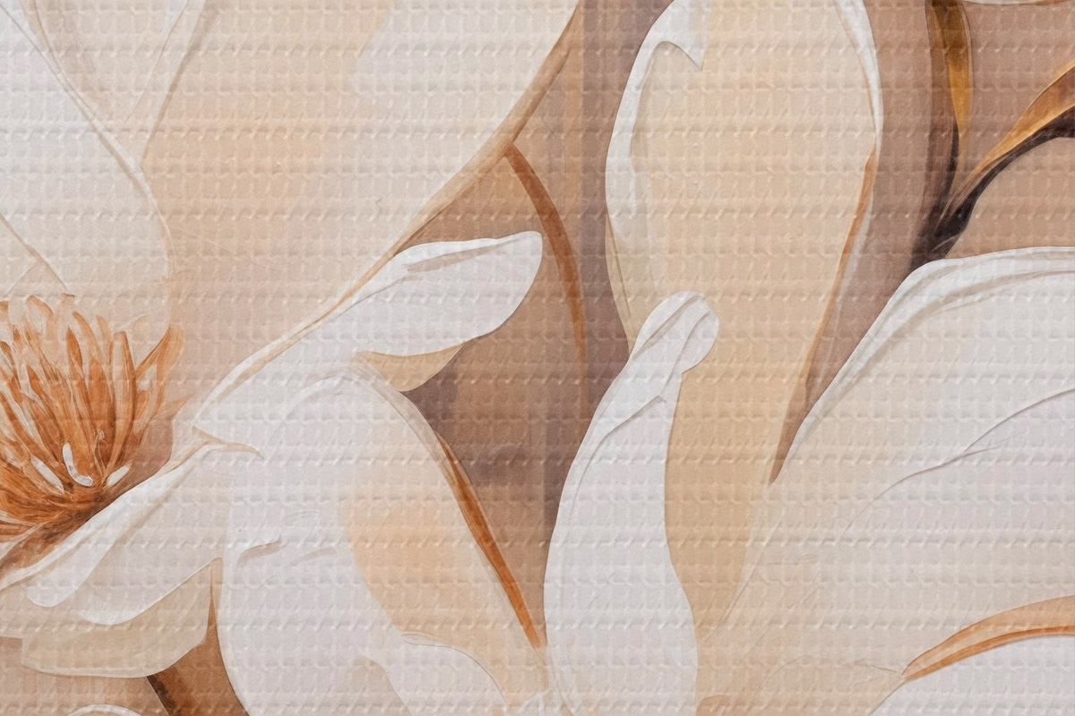 Runde Wandbilder Weiße Magnolienblüten vor einem weichen, verschwommenen Hintergrund aus Beige- und Brauntönen, elegante Blumenkomposition Nr r45571